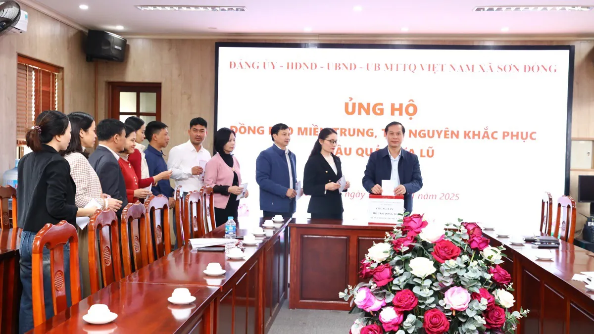 Phát huy truyền thống “Tương thân tương ái” của dân tộc, MTTQ Việt Nam xã Sơn Đồng kêu gọi các cơ quan, tổ chức, các doanh nghiệp, các nhà hảo tâm cùng toàn thể Nhân dân trên địa bàn tham gia ủng hộ đồng bào các tỉnh miền Trung - Tây Nguyên bị ảnh hưởng do thiên tai gây ra. Ngay sau lễ phát động, lãnh đạo Đảng ủy, HĐND, UBND, MTTQ, các ngành, đoàn thể xã đã trực tiếp ủng hộ được tổng số tiền trên 15 triệu đồng.