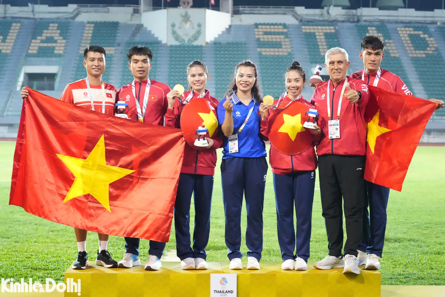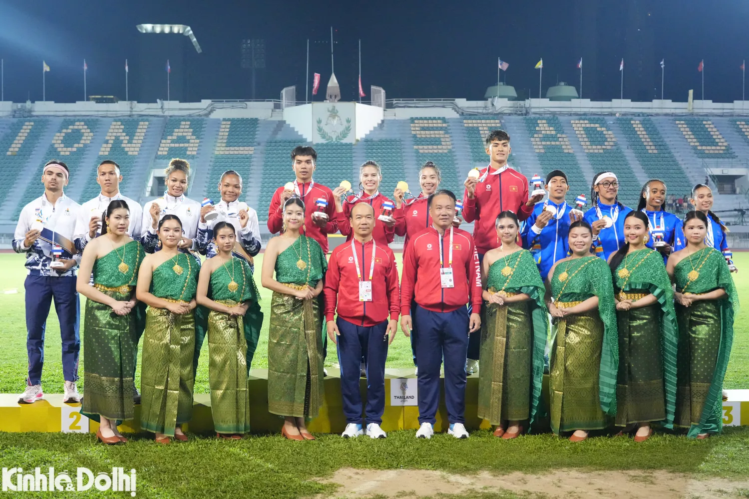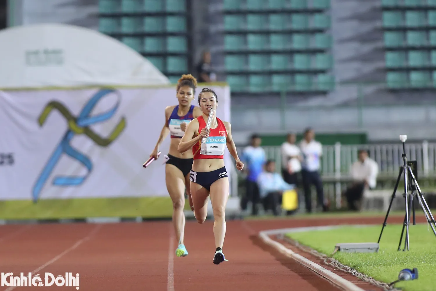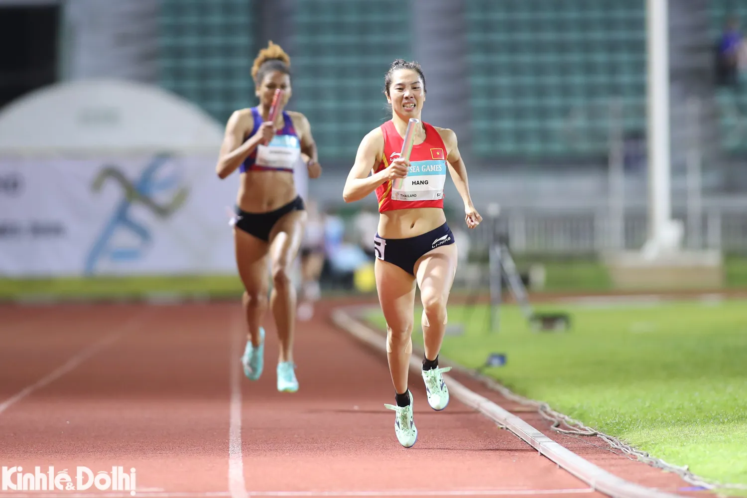 Kinhtedothi - Trong ngày thi đấu 13/12 tại SEA Games 33, Đoàn Thể thao Việt Nam giành 6 HCV từ các môn karate, teakwondo và điền kinh. Trong đó, 4 vận động viên điền kinh Việt Nam là Lê Ngọc Phúc, Nguyễn Thị Hằng, Nguyễn Thị Ngọc, Tạ Ngọc Tưởng phá kỷ lục SEA Games với thành tích 3 phút 15 giây 07 (so với kỷ lục cũ 3 phút 19 giây 29) ở nội dung tiếp sức 4x400m hỗn hợp.