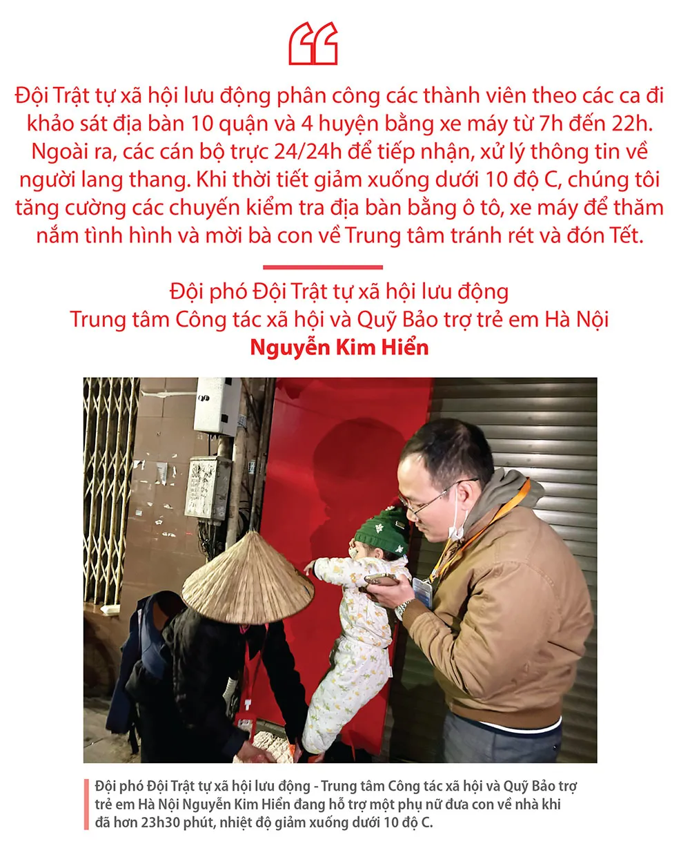 Thực hiện Kế hoạch 308/KH-UBND của UBND TP Hà Nội, tại thời điểm này, các quận, huyện, xã, phường, đơn vị, DN vẫn tiếp tục rà soát để tất cả các đối tượng đều được quan tâm tặng quà và không để một ai không có Tết. Đội Trật tự xã hội lưu động của Trung tâm Công tác xã hội và Quỹ Bảo trợ trẻ em Hà Nội cũng tăng cường các buổi đi khảo sát, tập trung người lang thang về đơn vị tránh rét và đón Tết Nguyên đán Giáp Thìn trong không khí đầm ấm, vui vẻ.
