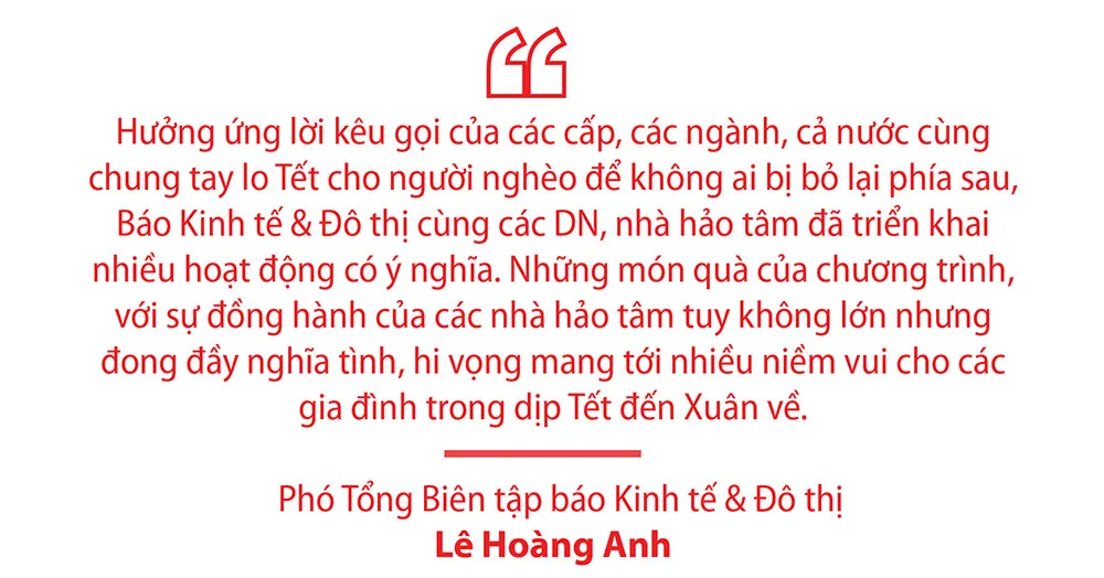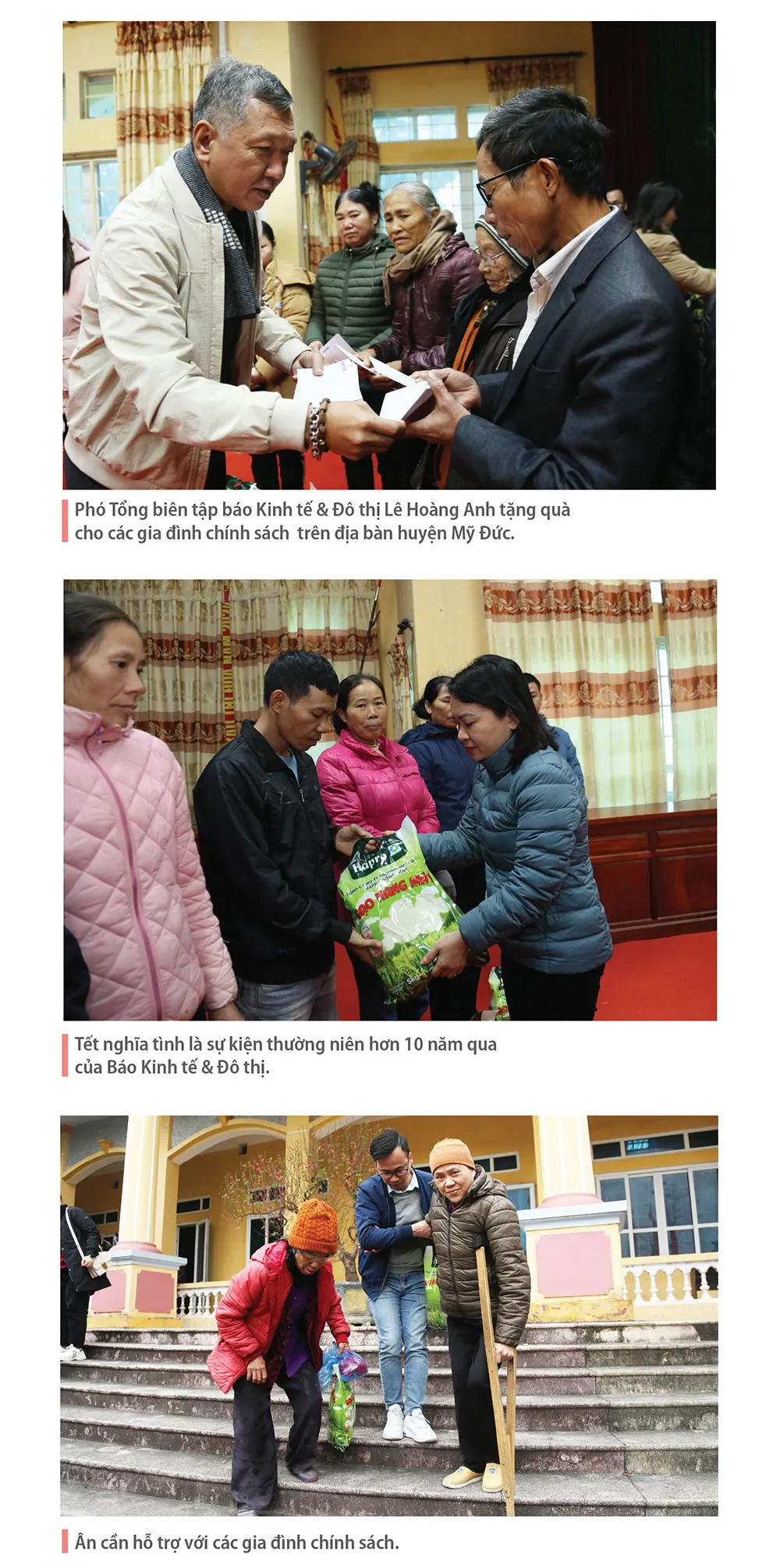 Dịp Tết Nguyên đán Giáp Thìn này, nhiều cơ quan, DN đã phối hợp với quận, huyện để tặng quà cho những gia đình có hoàn cảnh khó khăn. Sáng 26/1, Báo Kinh tế & Đô thị, DN, nhà hảo tâm phối hợp với huyện Ứng Hòa tổ chức Chương trình “Chợ Tết Nhân ái” Xuân Giáp Thìn 2024. Phó Chủ tịch UBND huyện Ứng Hòa Ngô Tiến Hoàng cho biết, toàn huyện đã huy động được gần 3.000 suất quà với tổng trị giá trên 2,5 tỉ đồng dành tặng cho các hộ khó khăn trên địa bàn huyện. “Chợ Tết Nhân ái” Xuân Giáp Thìn có nhiều hoạt động ý nghĩa, với 8 gian hàng 0 đồng, bao gồm nhu yếu phẩm thiết yếu cho các đơn vị, DN tài trợ. Khi đến tham gia, người dân dùng phiếu đổi lấy hàng tại 8 gian hàng do Ban tổ chức bố trí. Và ngày 30/1 vừa qua, Báo Kinh tế & Đô thị cùng các nhà hảo tâm trao 100 suất quà cho các gia đình chính sách, hộ nghèo trên địa bàn huyện Mỹ Đức (Hà Nội). Đây là hoạt động nằm trong chương trình Tết Nghĩa tình do Báo Kinh tế & Đô thị tổ chức thường niên.