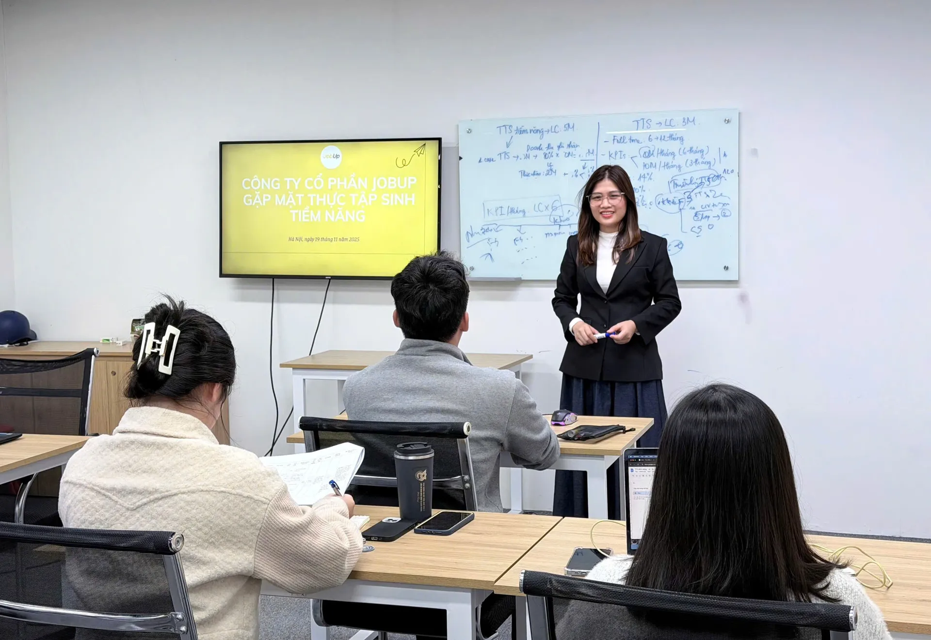 Thạc sĩ Phan Thị Hạ đang trao đổi với các thực tập sinh tiềm năng.