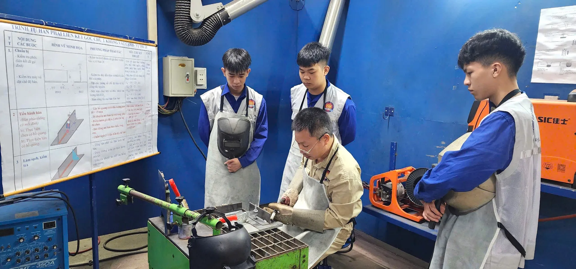 Sinh viên Trường Cao đẳng nghề Việt Nam – Hàn Quốc TP Hà Nội được giáo viên hướng dẫn thực hành nghề Hàn.