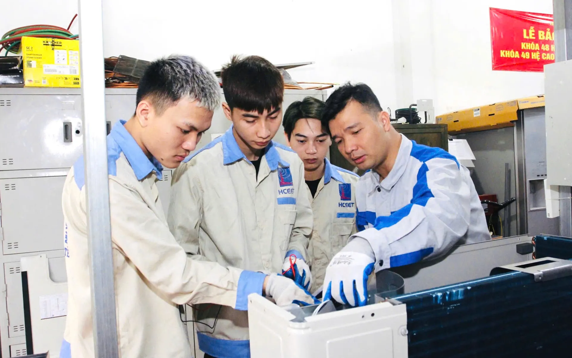 Giờ học thực hành của sinh viên Trường Cao đẳng Điện tử - Điện lạnh Hà Nội.