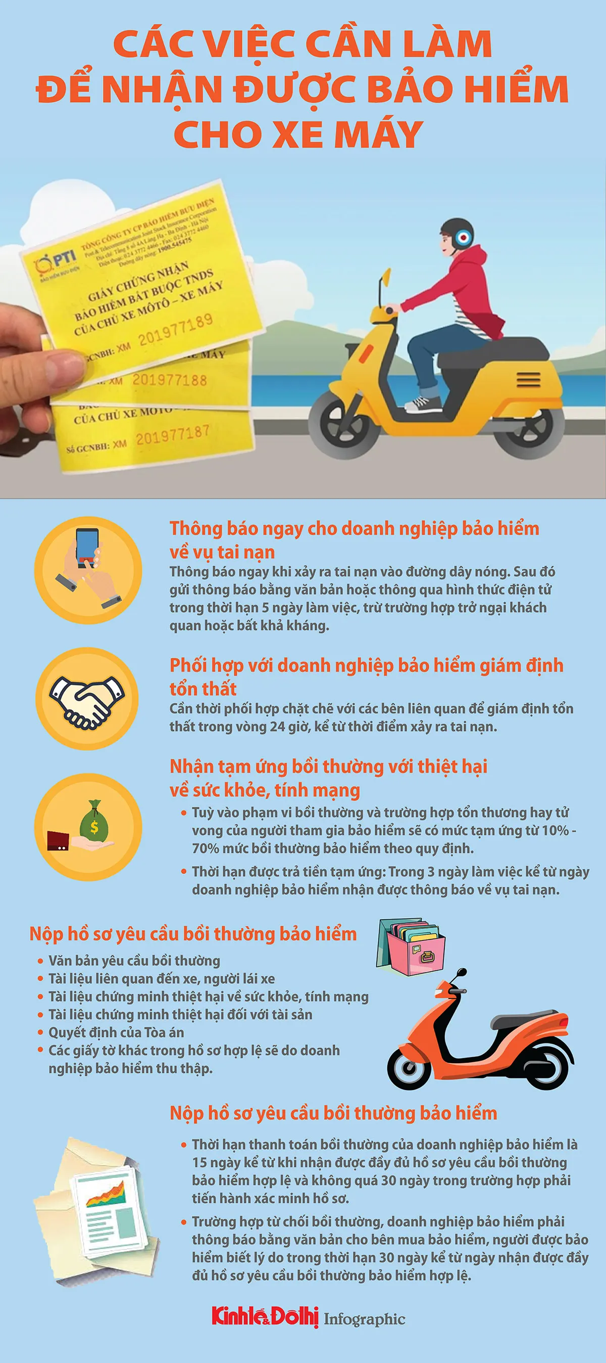 Kinhtedothi - Hiện nay, nhiều người sử dụng bảo hiểm trách nhiệm dân sự xe máy bắt buộc khi tham gia giao thông nhưng không phải ai cũng nắm rõ quy trình yêu cầu bồi thường khi xảy ra sự cố tai nạn...