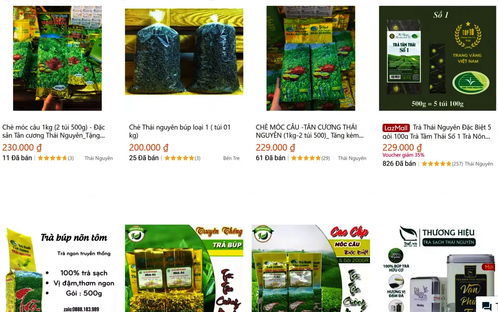 Các nông sản của tỉnh Thái Nguyên trên một sàn TMĐT. Ảnh: Báo Thái
