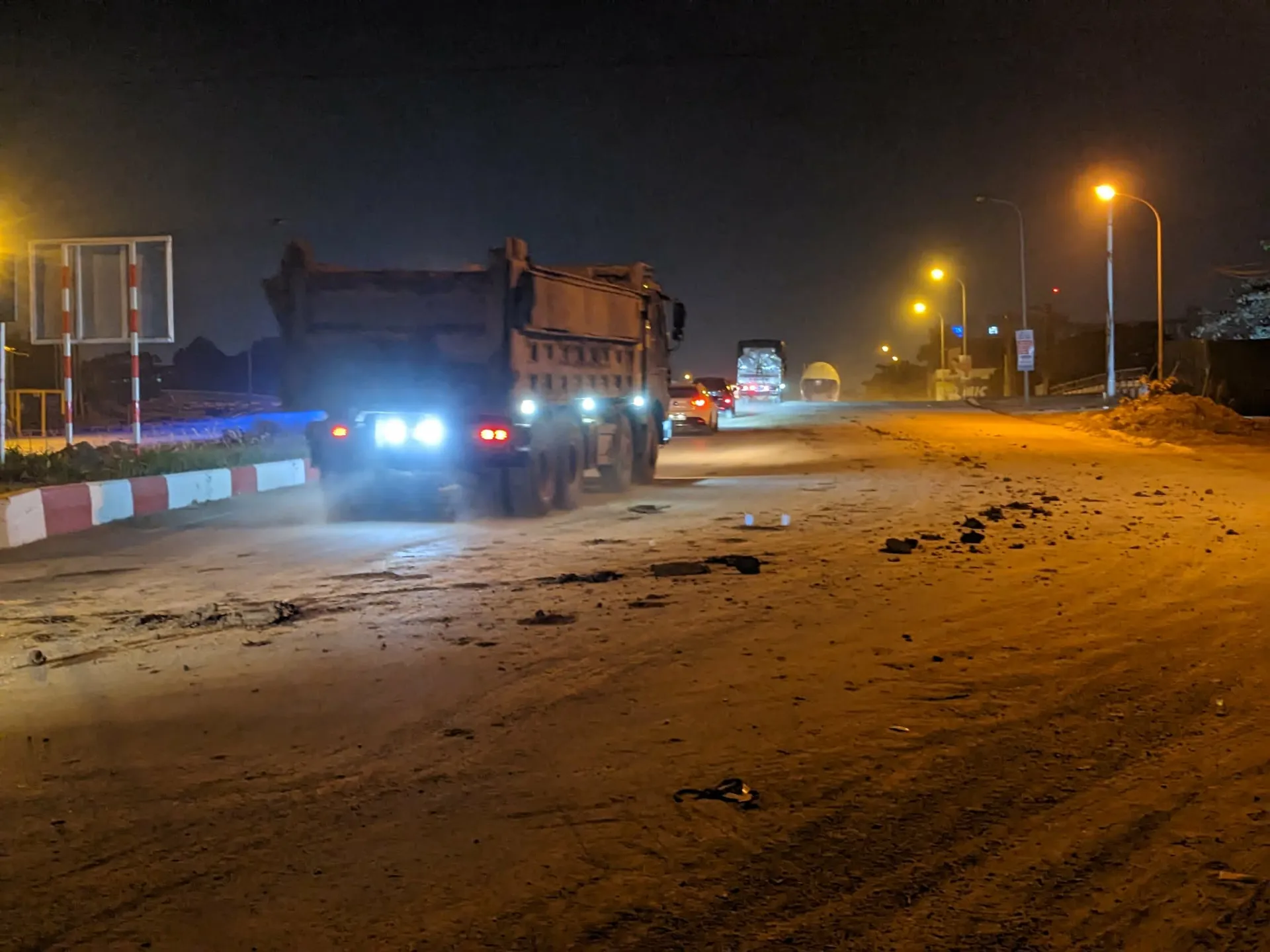 Đoàn xe rầm rộ ra vào đổ thải trong đêm 30/12/2025.