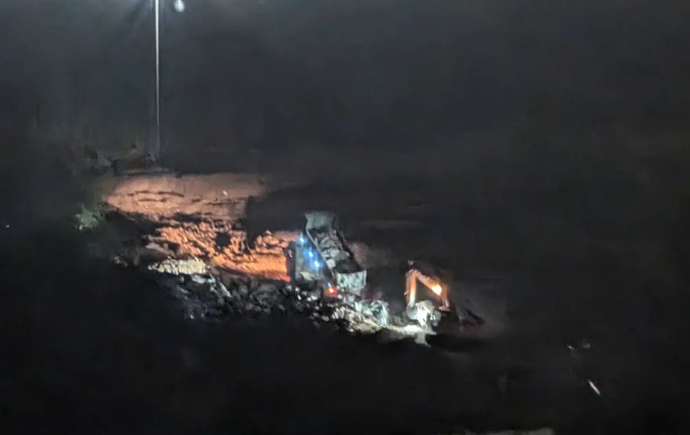 Trong đêm tối, chiếc xe lầm lũi xé toạc màn đêm đi vào vị trí quen thuộc. Tại đây, một chiếc máy múc đã đợi sẵn. Khi bùn đất trên thùng xe đổ xuống, máy múc lại thực hiện công việc san gạt quen thuộc. Không lâu sau đó, hai chiếc xe tải khác lần lượt đi vào, ánh đèn xe sáng trưng cả khoảng trời đêm.
