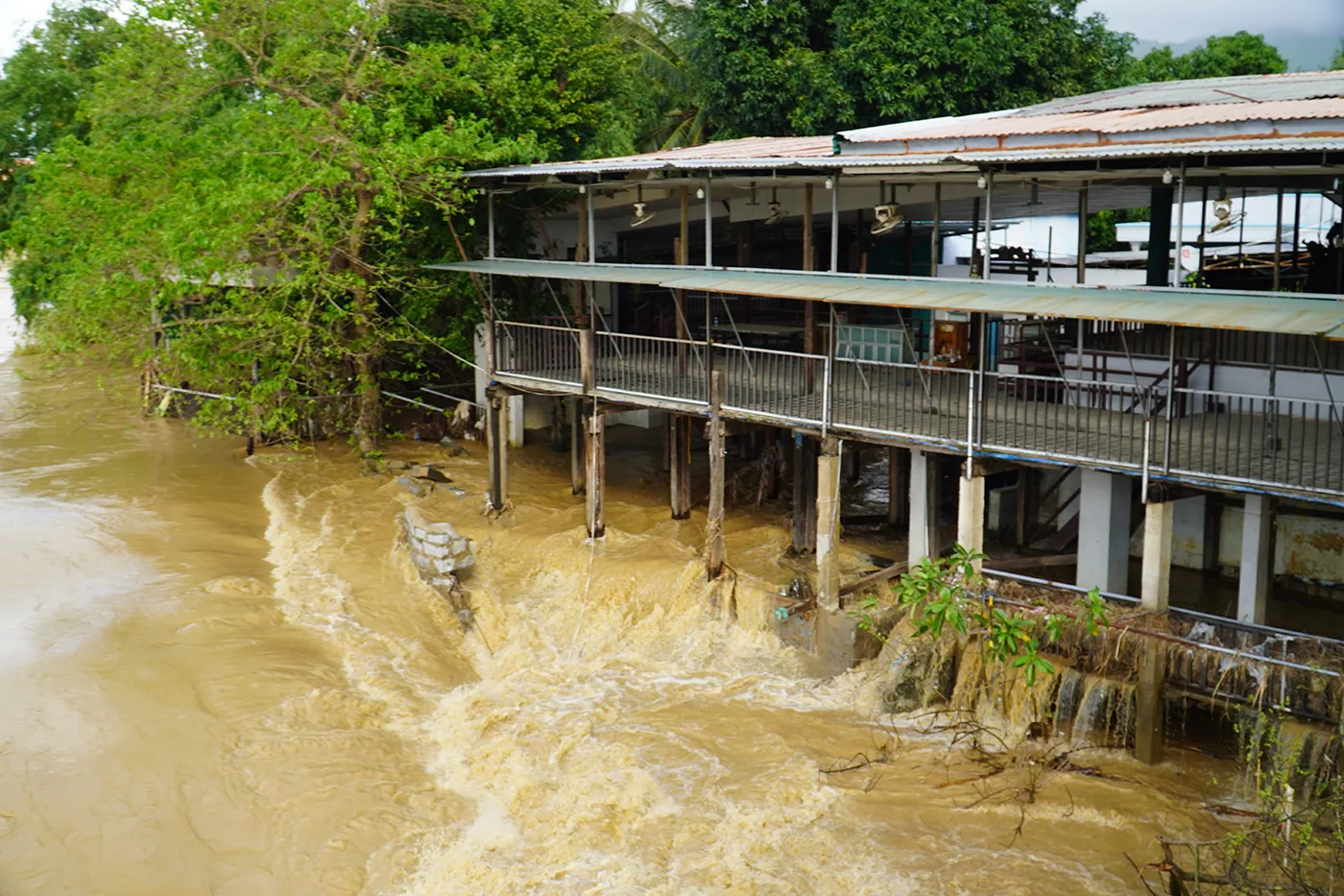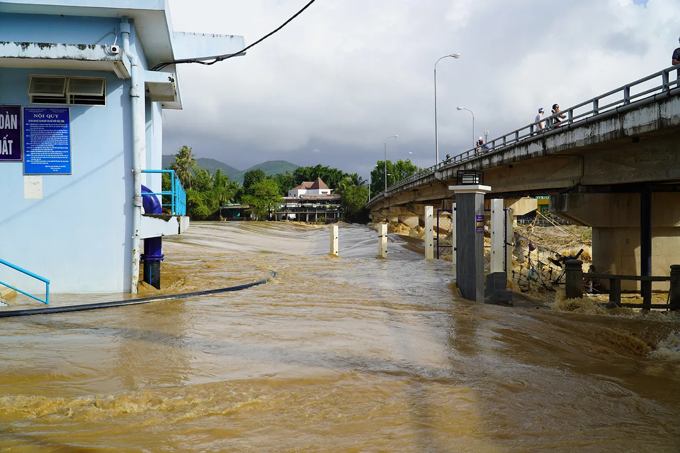 Nhiều khu vực phường Tây Nha Trang bắt đầu ngập khi nước Sông Cái Nha Trang lên nhanh.