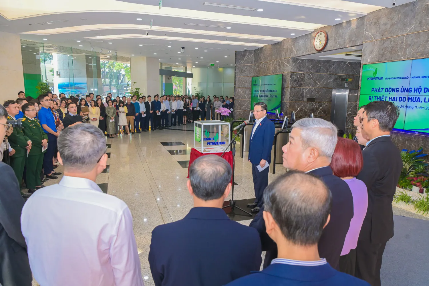 Phát biểu tại lễ phát động, Chủ tịch HĐTV Petrovietnam Lê Mạnh Hùng nhấn mạnh, trong những ngày qua, thiên tai liên tiếp gây thiệt hại nặng nề, đặc biệt tại khu vực miền Trung, Tây Nguyên. Mưa lũ chưa kịp rút, các cơ quan chức năng đã tiếp tục cảnh báo cơn bão số 15 có khả năng đổ bộ, dự báo gây tổn thất lớn về người và tài sản. Trong bối cảnh cả nước đang hướng về miền Trung bằng những hành động sẻ chia thiết thực, sáng nay, Quốc hội cũng đã tổ chức phát động quyên góp ủng hộ đồng bào vùng lũ.
