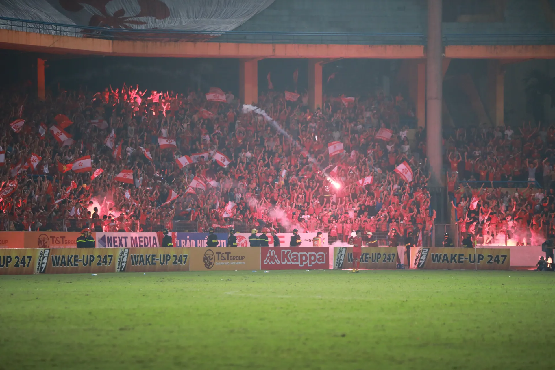| Pháo sáng được CĐV Hải Phòng ném xuống sân Hàng Đẫy. |