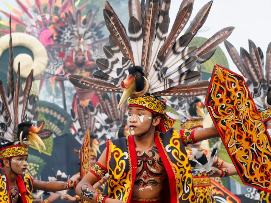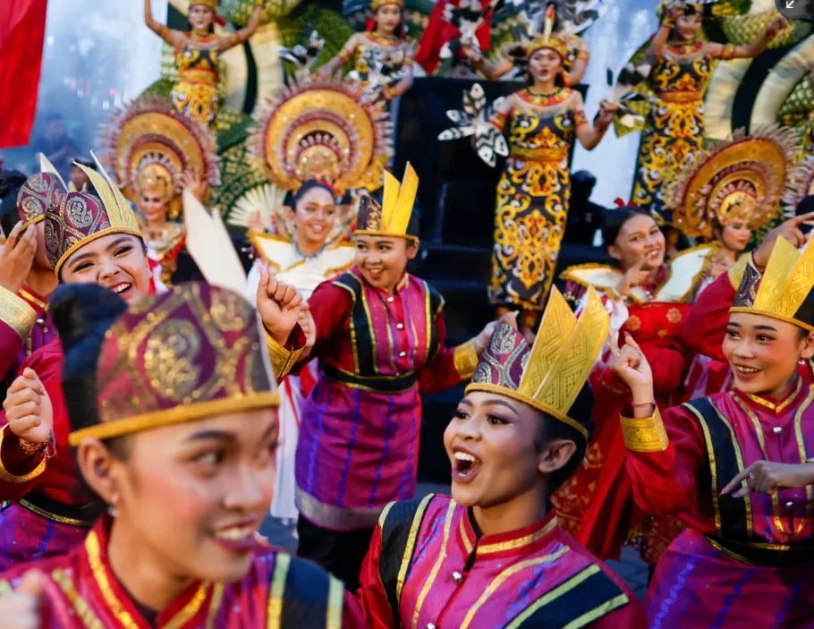 Người dân tại đảo Bali, Indonesia đón năm mới với điệu nhảy truyền thống rực rỡ sắc màu. Ảnh: EPA