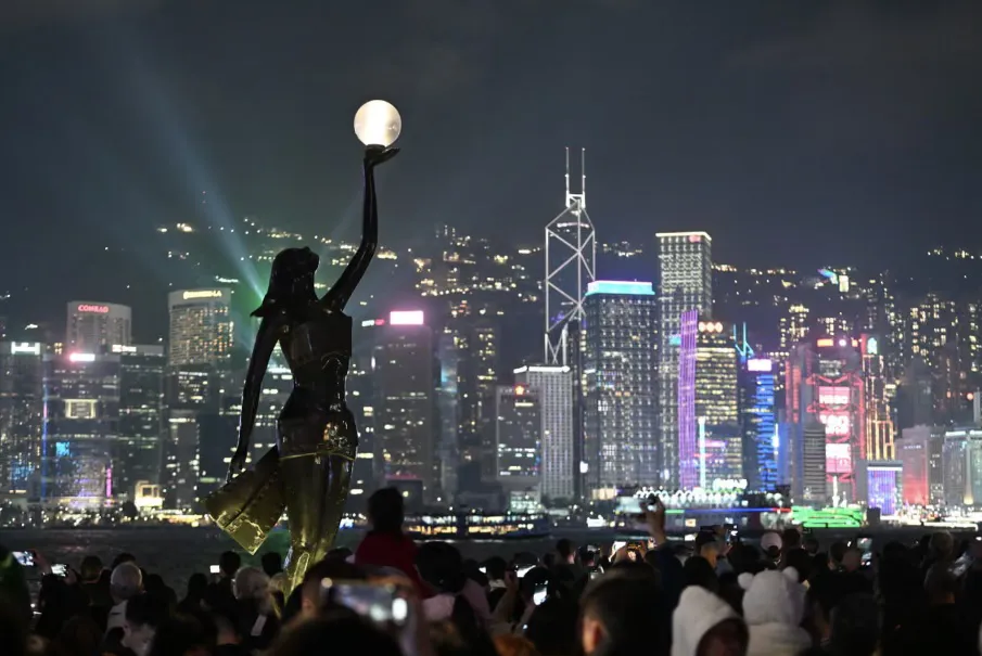Người dân tại Hong Kong, Trung Quốc tập trung tại cảng Victoria đón chào giờ khắc năm mới. Ảnh: EPA