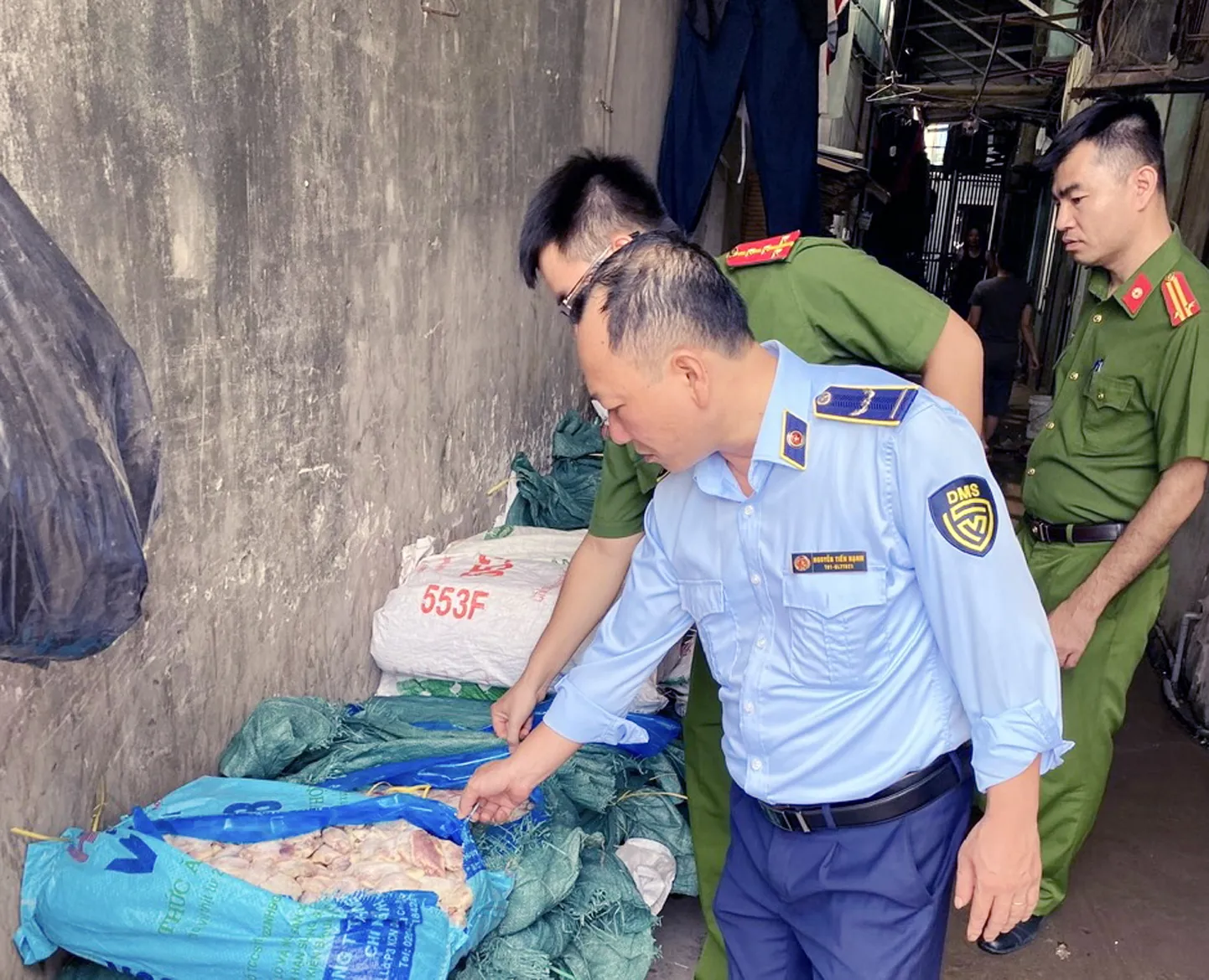 Cùng ngày Đội Quản lý thị trường số 24 (Cục Quản lý thị trường Hà Nội) phối hợp với công an huyện Hoài Đức kiểm tra địa điểm kinh doanh tại khu Phúc Lợi 1, tập thể Thú y (xã Đức Thượng, huyện Hoài Đức).