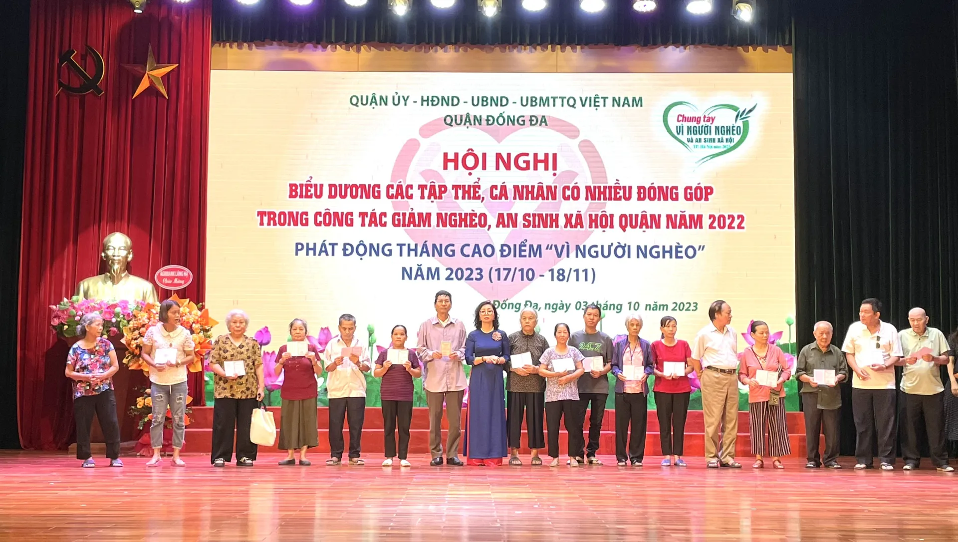 Để công tác giảm nghèo đi vào thực chất, thực hiện có hiệu quả và mang tính bền vững, quận Đống Đa đã thực hiện tốt các chính sách đặc thù đối với những đối tượng như: trợ cấp hàng tháng đối với người cao tuổi cô đơn, người khuyết tật đặc biệt nặng, người mắc bệnh hiểm nghèo; đảm bảo khi người dân gặp khó khăn, thiếu hụt ở tiêu chí giảm nghèo nào sẽ hỗ trợ các tiêu chí đó bằng nhiều mô hình, cách làm sáng tạo, hiệu quả thực chất.