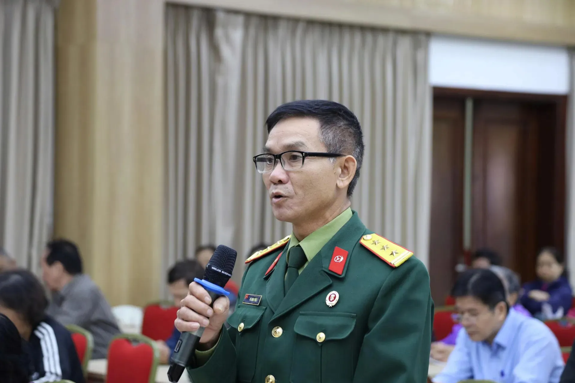 Đại diện người dân phường Cửa Nam nêu ý kiến tại Hội nghị đối thoại trực tiếp giữa người đứng đầu cấp ủy, chính quyền với MTTQ, các tổ chức chính trị - xã hội và Nhân dân năm 2025. Ảnh: Bảo Hiếu