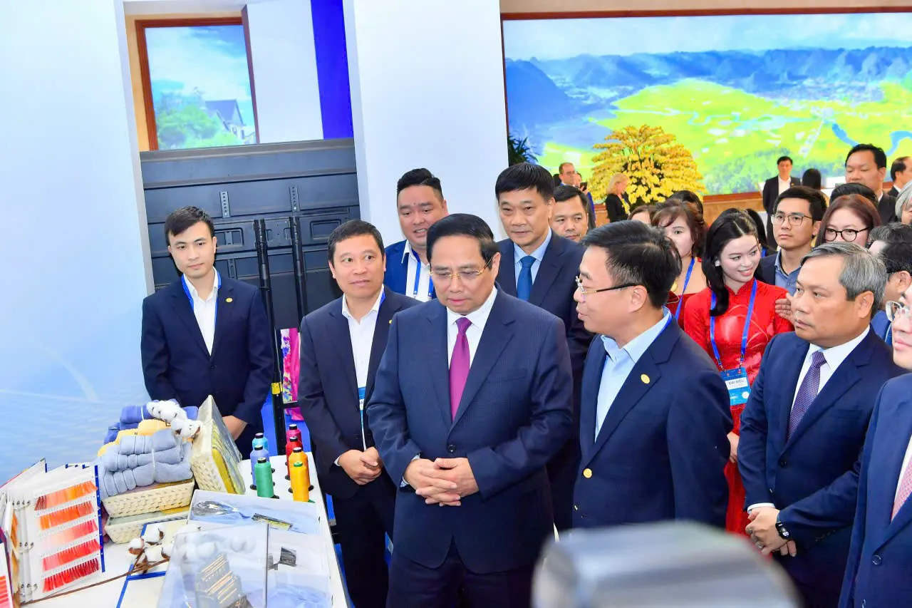 Thủ tướng Chính phủ Phạm Minh Chính thăm các gian hàng tại Diễn đàn. Ảnh: Hoàng Anh
