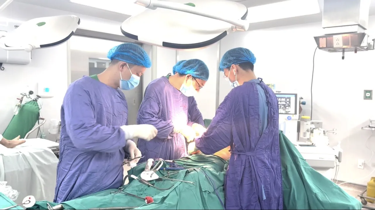 Phẫu thuật viên tiến hành bóc tách cẩn trọng theo mặt phẳng giải phẫu, kiểm soát các nhánh mạch nhỏ, tránh tổn thương tạng lân cận. Toàn bộ khối u được lấy ra nguyên vẹn, nặng gần 4kg, kích thước 28 × 15cm. Bệnh nhân mất ước tính dưới 300ml máu, không cần truyền máu trong mổ.