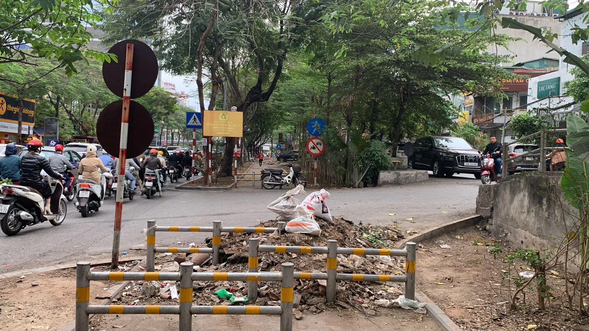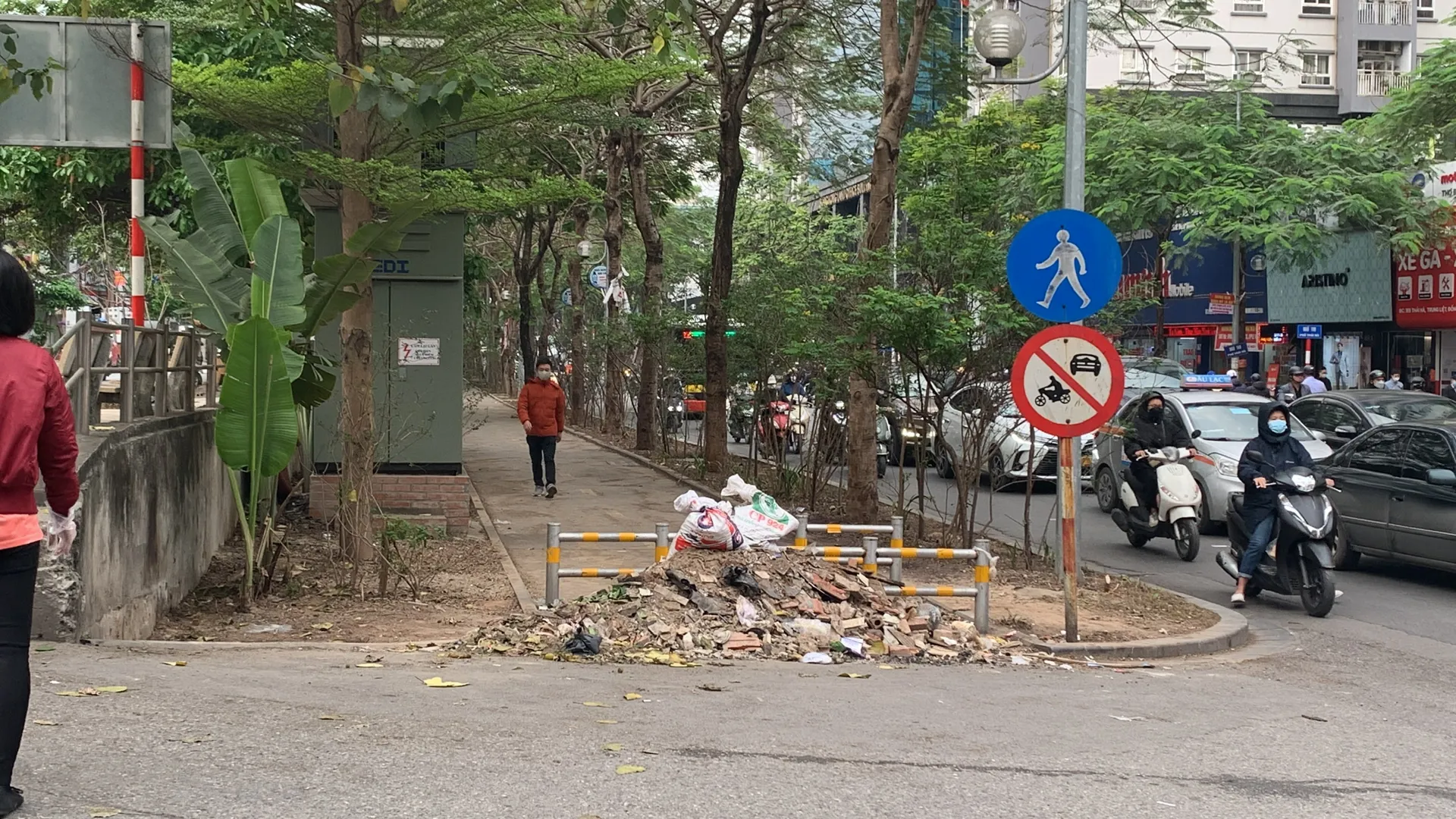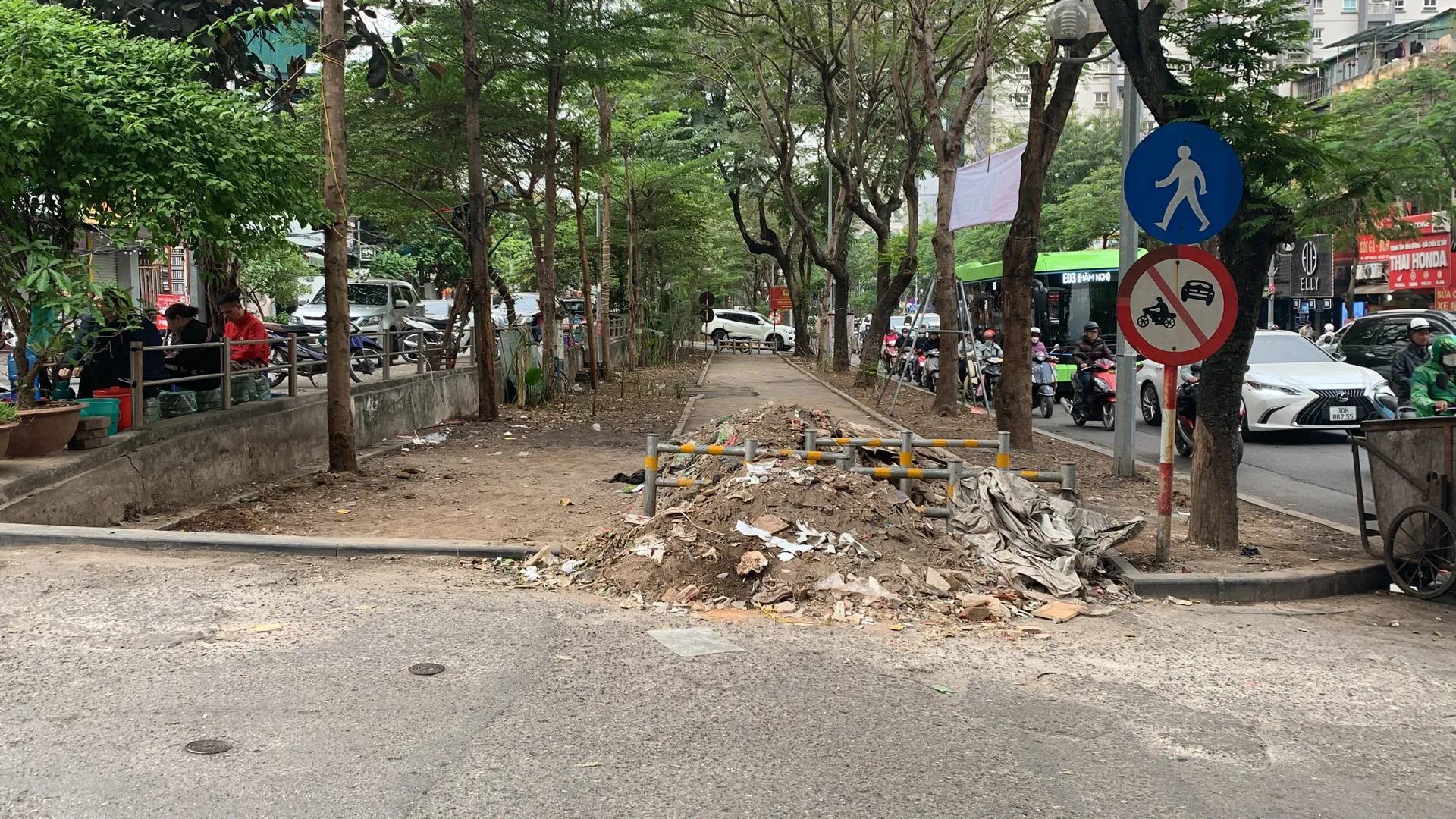 Có mặt tại khu vực này, theo ghi nhận của phóng viên báo Kinh tế & Đô thị, rất khó để người dân có thể tiếp cận với không gian dành cho người đi bộ. Nói như vậy là bởi, các điểm dẫn vào tuyến đường đi bộ này, hướng từ Rạp chiếu phim Quốc gia hướng đi Hoàng Cầu hiện đã bị bảo phủ bởi một lượng lớn phế thải xây dựng.