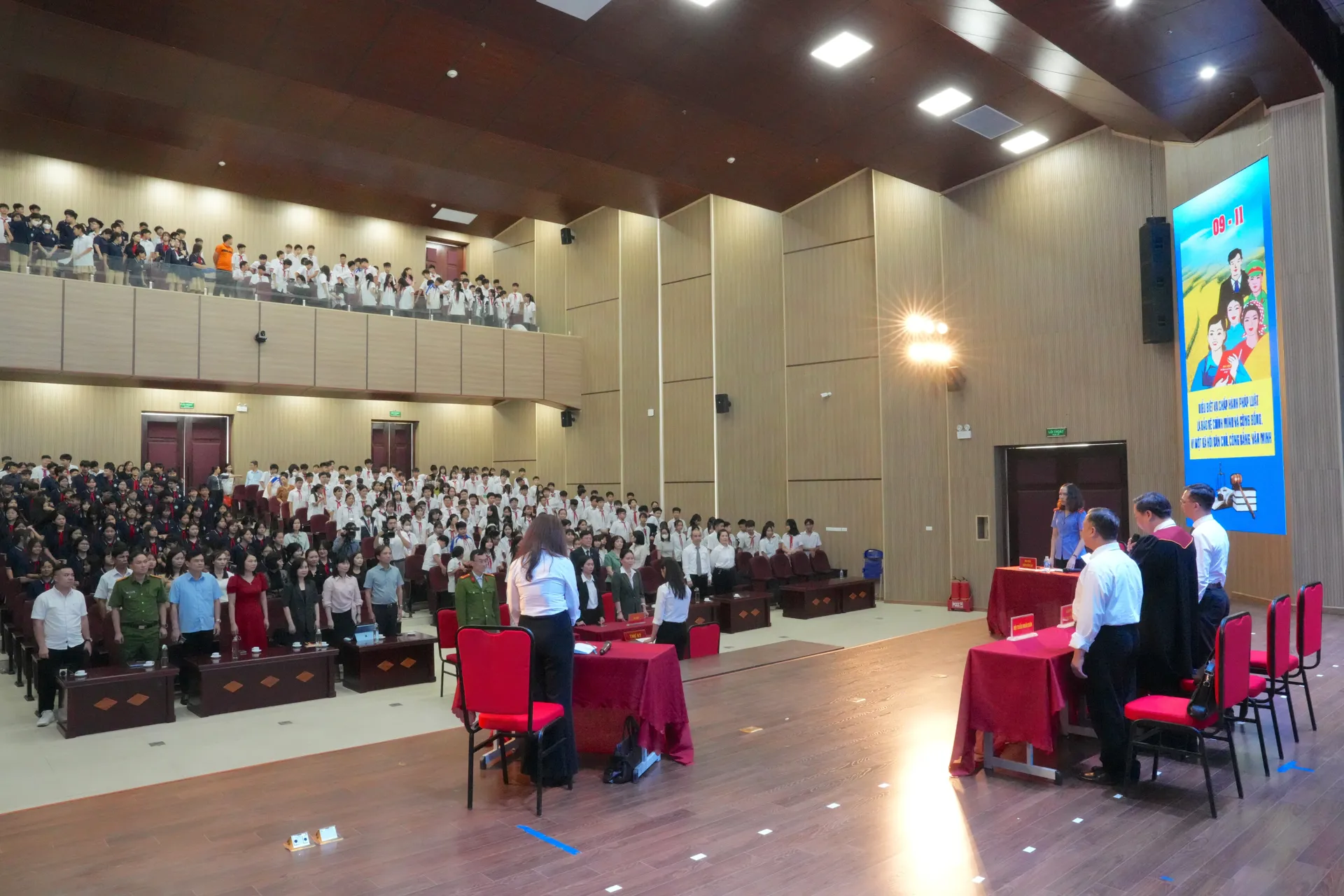Nhân dịp này, Sở Tư pháp phối hợp với Đoàn Luật sư TP Hà Nội và chính quyền xã Vân Đình tổ chức chương trình tuyên truyền pháp luật cho học sinh thông qua mô hình “Phiên tòa giả định”. Đây là hình thức trực quan, sinh động, giúp học sinh tiếp cận pháp luật một cách gần gũi, dễ hiểu.