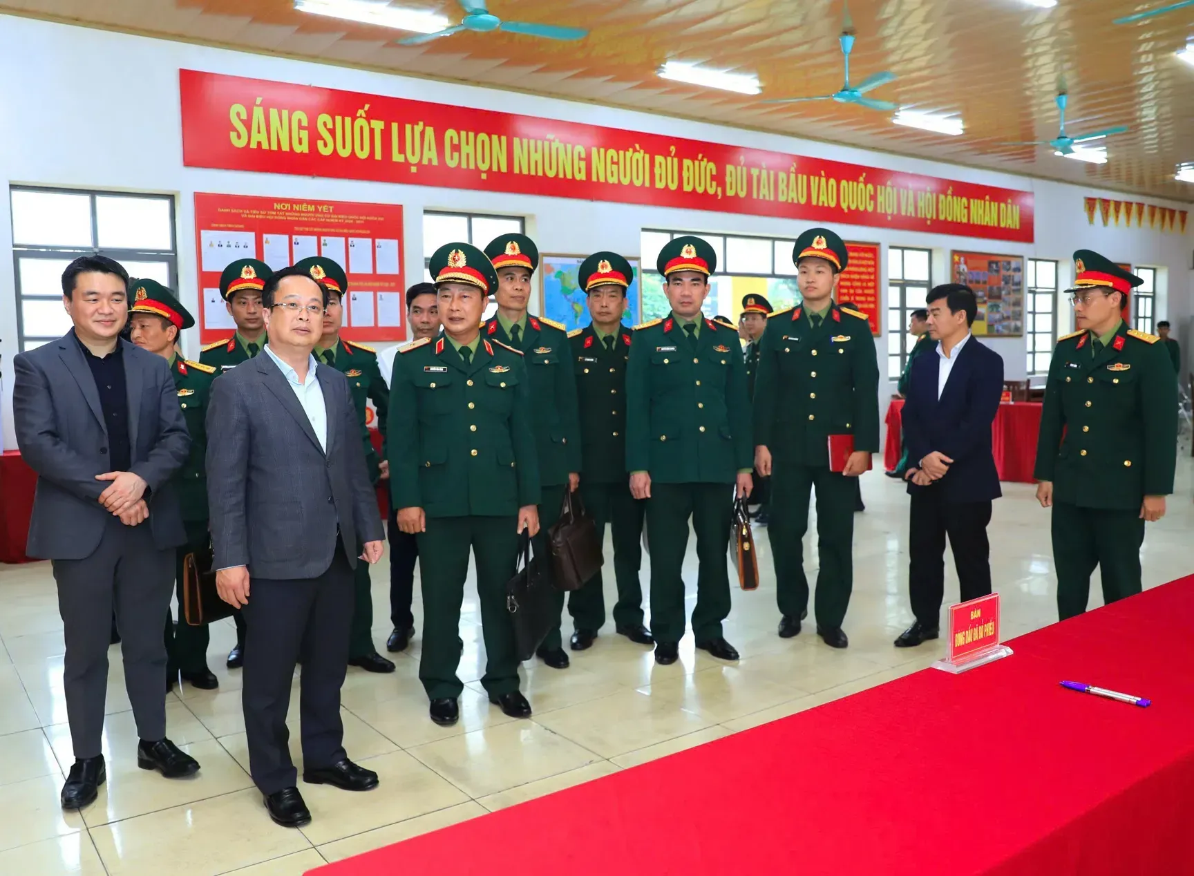 Tại xã Đoài Phương (địa bàn có đặc thù với số lượng cử tri là quân nhân, công nhân viên quốc phòng chiếm tỷ lệ lớn), công tác chuẩn bị được triển khai sớm, bài bản. Toàn xã thành lập 5 Ban bầu cử tại 5 đơn vị bầu cử; 42 Tổ bầu cử với 447 thành viên. Xã có 45 điểm bỏ phiếu được bố trí tại nhà văn hóa các thôn và các đơn vị quân đội. Đến thời điểm kiểm tra, nhiều khu vực bỏ phiếu đã hoàn thành trang trí khánh tiết, các điểm còn lại đang khẩn trương hoàn thiện, bảo đảm hoàn thành trước thời hạn theo kế hoạch.