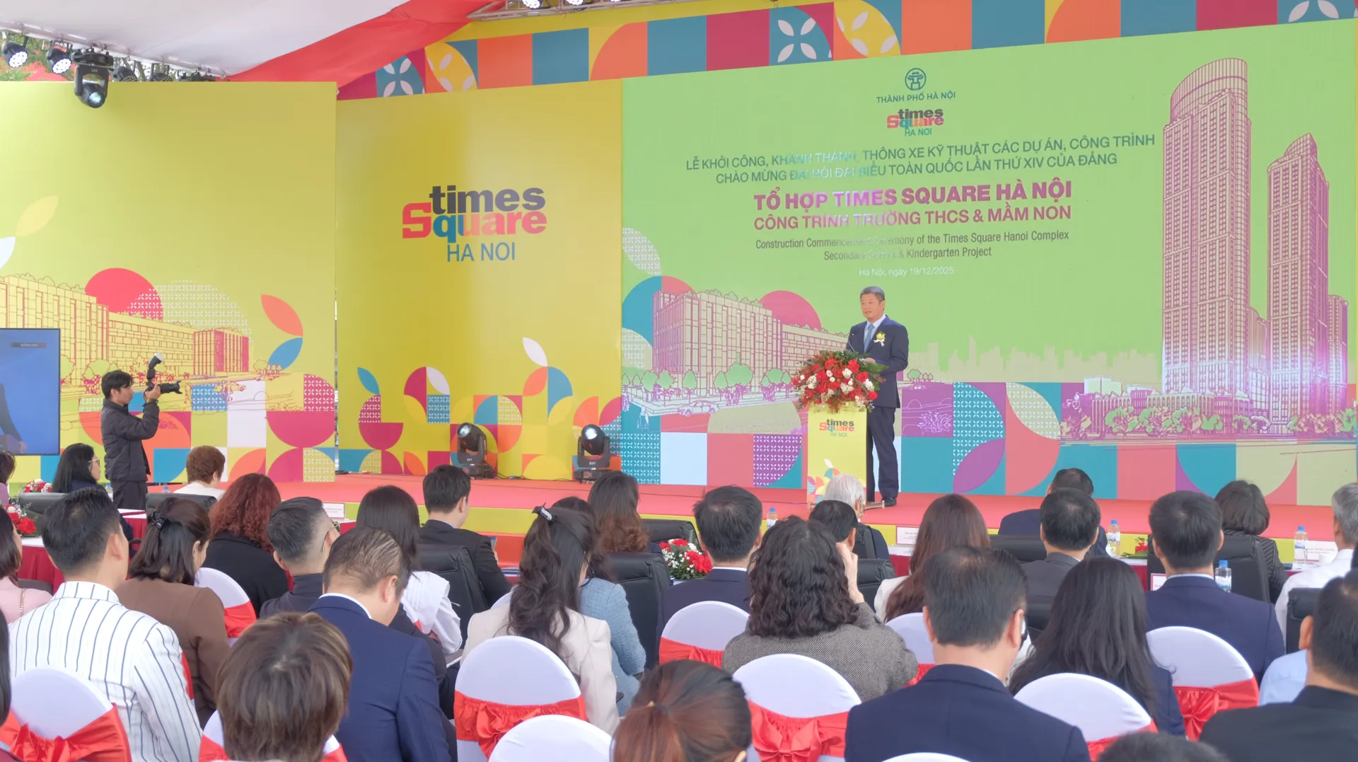 Kinhtedothi - Ngày 19/12, Công ty TNHH Thăng Long Property tổ chức Lễ khởi công Dự án Tổ hợp Times Square Hà Nội, hạng mục công trình trường Trung học Cơ sở và Mầm non. Đây là một trong 234 dự án, công trình lớn được khởi công, khánh thành, thông xe kỹ thuật trên cả nước trong ngày hôm nay, hướng tới chào mừng Đại hội Đại biểu toàn quốc lần thứ 14 của Đảng.