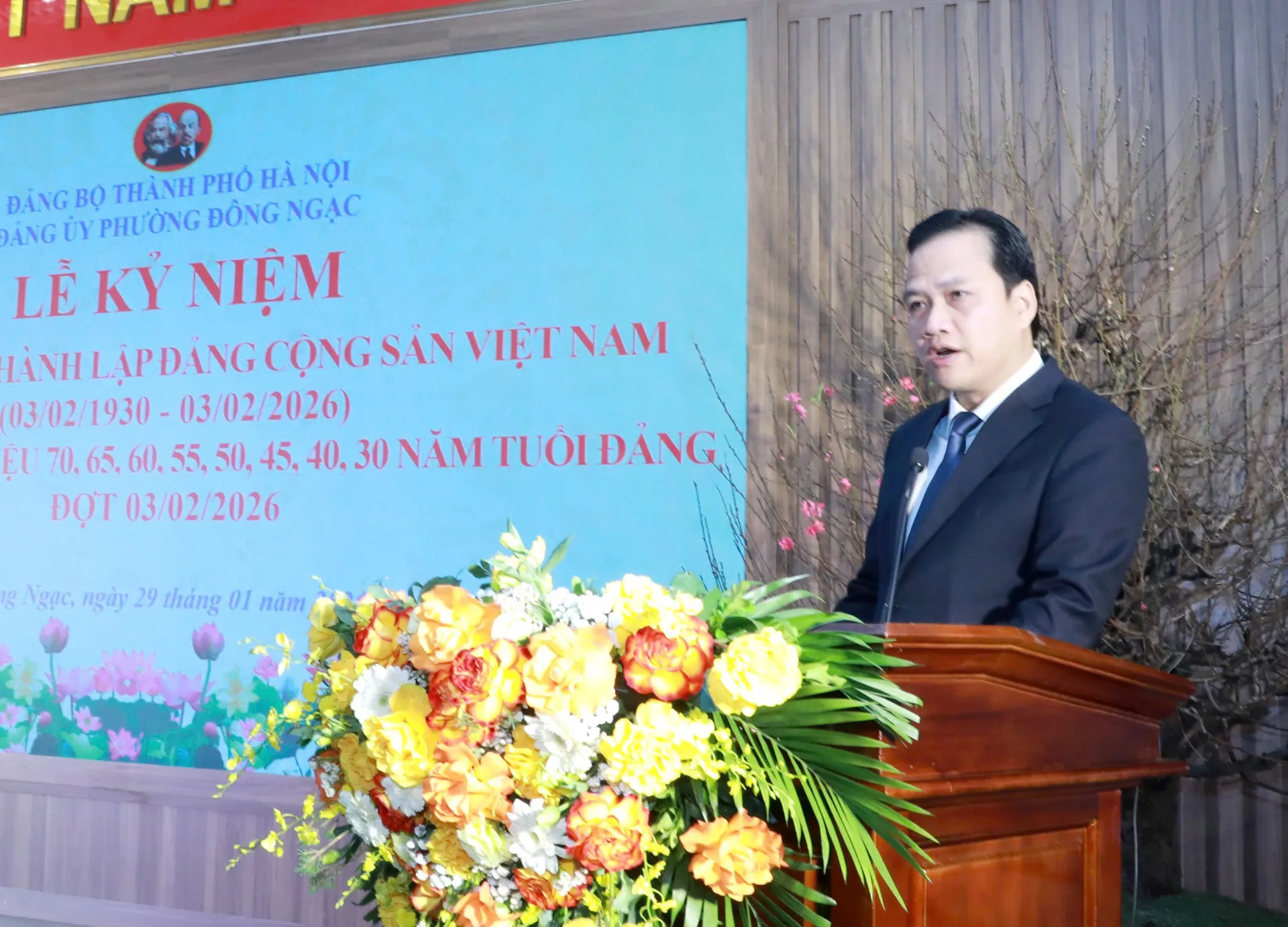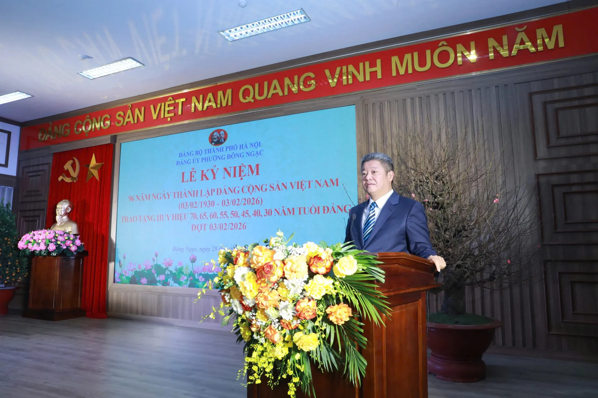 Trình bày bài diễn văn tại lễ kỷ niệm, Bí thư Đảng ủy, Chủ tịch HĐND phường Đông Ngạc Ngô Văn Nam đã ôn lại chặng đường vẻ vang của Đảng. Năm 2025 là năm đầy ắp những sự kiện trọng đại, những chuyển biến mang tính bước ngoặt đối với đất nước và Thủ đô nói chung, trong đó có phường Đông Ngạc. Từ ngày 1/7/2025, triển khai mô hình chính quyền địa phương 2 cấp, đến nay hệ thống chính trị tại phường hoạt động ổn định, thông suốt, với hiệu năng và hiệu quả rõ rệt. Đồng thời, vào tháng 8/2025 phường Đông Ngạc tổ chức thành công Đại hội đại biểu Đảng bộ phường lần thứ I, nhiệm kỳ 2025 - 2030.
