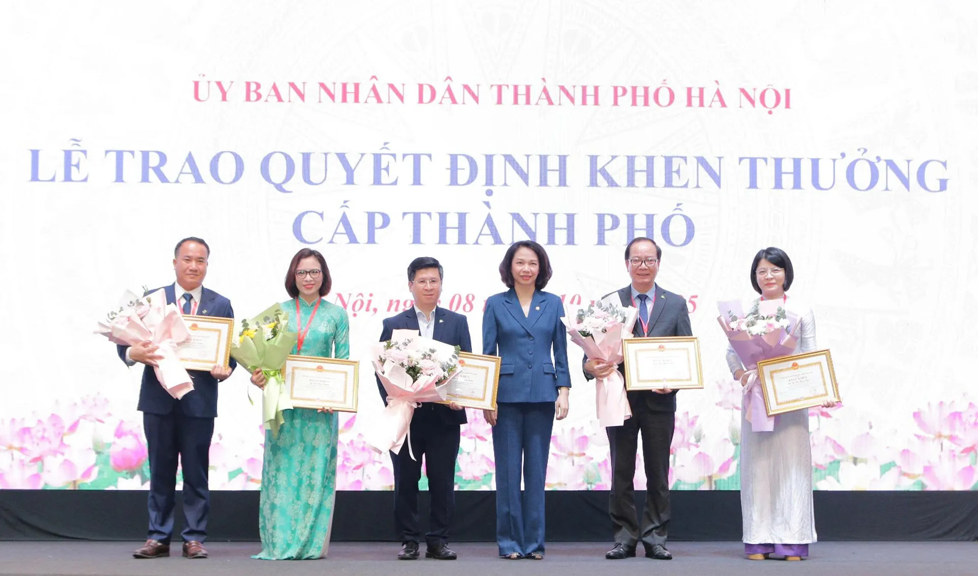 Phó Chủ tịch UBND TP Vũ Thu Hà trao tặng Bằng khen cho các tập thể và cá nhân.