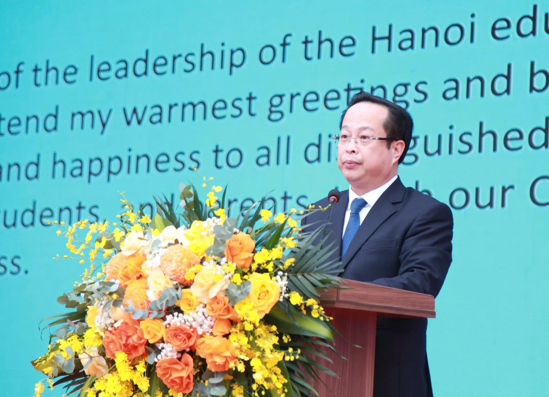 Ủy viên Ban Thường vụ Thành ủy, Giám đốc Sở GD&ĐT Hà Nội Trần Thế Cương phát biểu tại sự kiện.