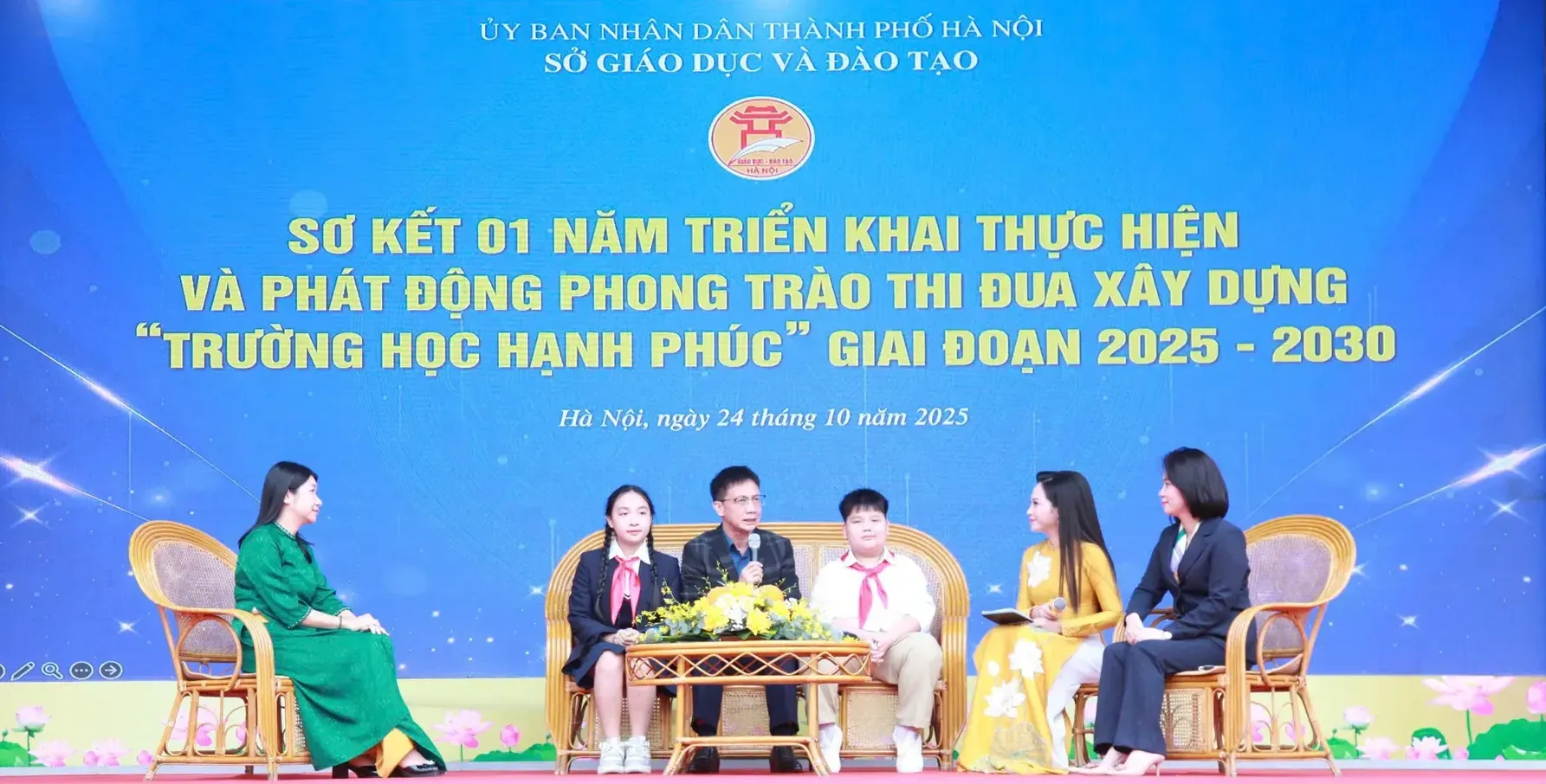 Tại hội nghị sơ kết đã diễn ra toạ đàm với chủ đề "Trường học hạnh phúc". Sở GD&ĐT Hà Nội trao khen thưởng cho 104 tập thể, 20 cá nhân tiêu biểu trong thực hiện phong trào và phát động tiếp tục triển khai phong trào thi đua xây dựng “Trường học hạnh phúc” tại các trường học trên địa bàn TP, giai đoạn 2025 - 2030.