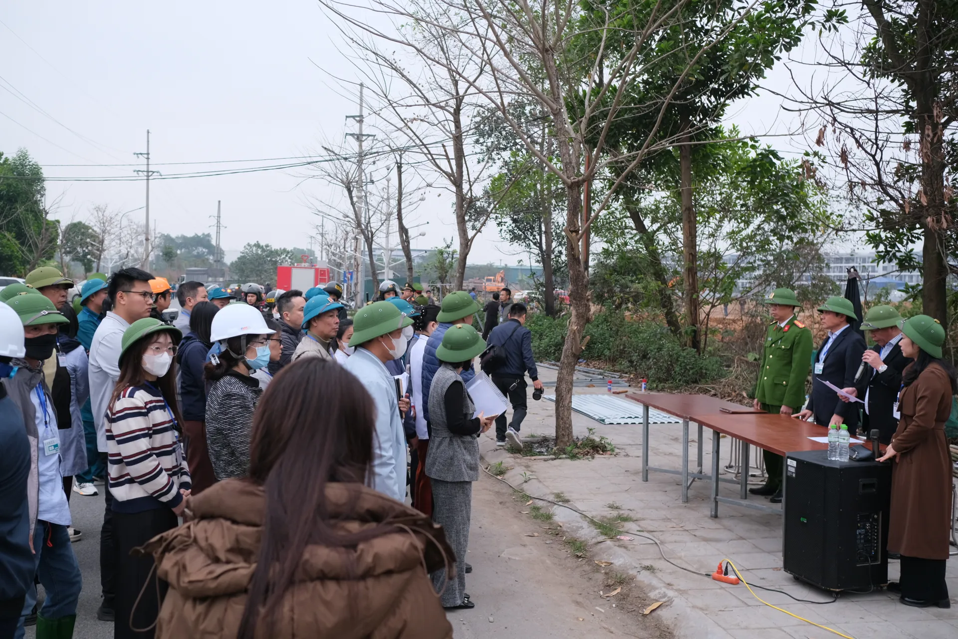 Lãnh đạo UBND phường Phúc Yên công bố Quyết định về việc cưỡng chế thực hiện thu hồi đất đối với 5 hộ gia đình để bàn giao mặt bằng thực hiện Dự án đầu tư phát triển đô thị tại phường Hùng Vương. Ảnh: Lương Giang