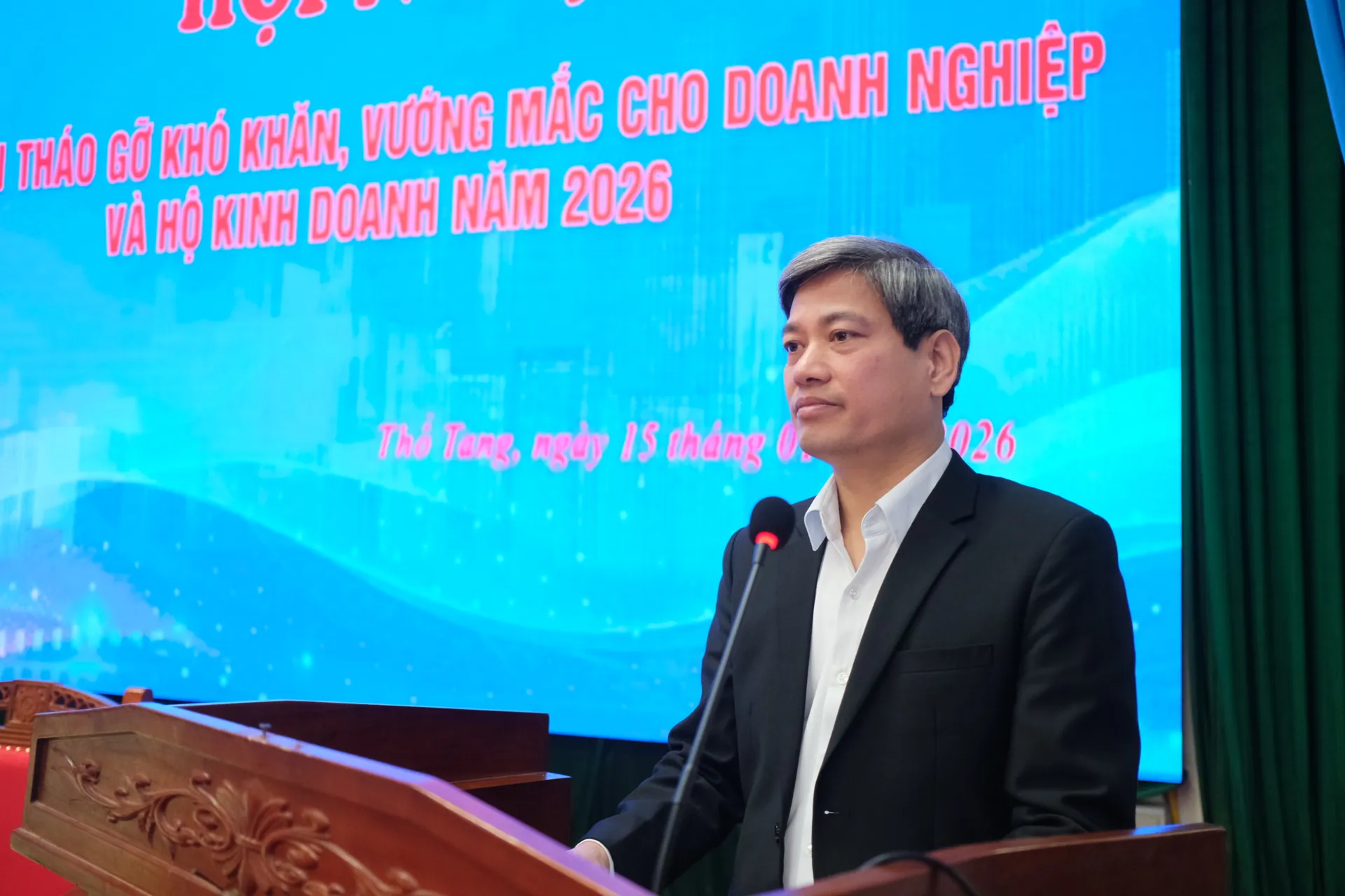 Phát biểu tại hội nghị, ông Khổng Đình Trưởng, Chủ tịch UBND xã Thổ Tang, khẳng định đây là dịp quan trọng để chính quyền cơ sở trực tiếp lắng nghe những phản ánh từ thực tiễn sản xuất, kinh doanh của người dân.