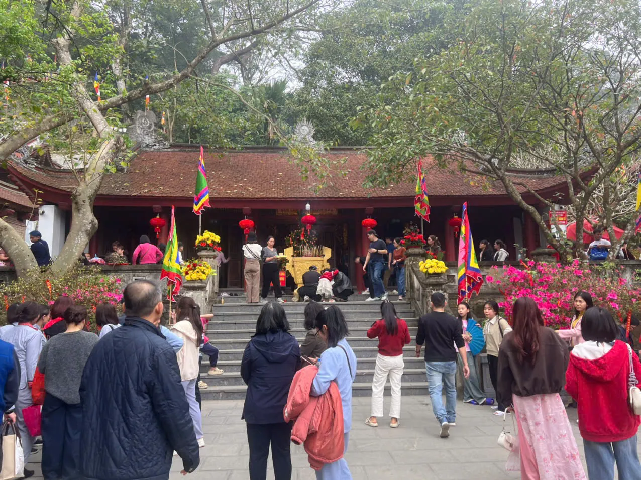 Dòng người hành hương nối dài từ đền Trình lên đền Thượng