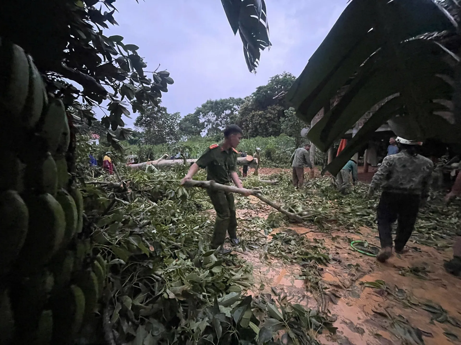 Dân quân phối hợp cùng lực lượng công an hỗ trợ người dân tỉnh Phú Thọ khắc phục hậu quả số 3. Ảnh: Lương Giang