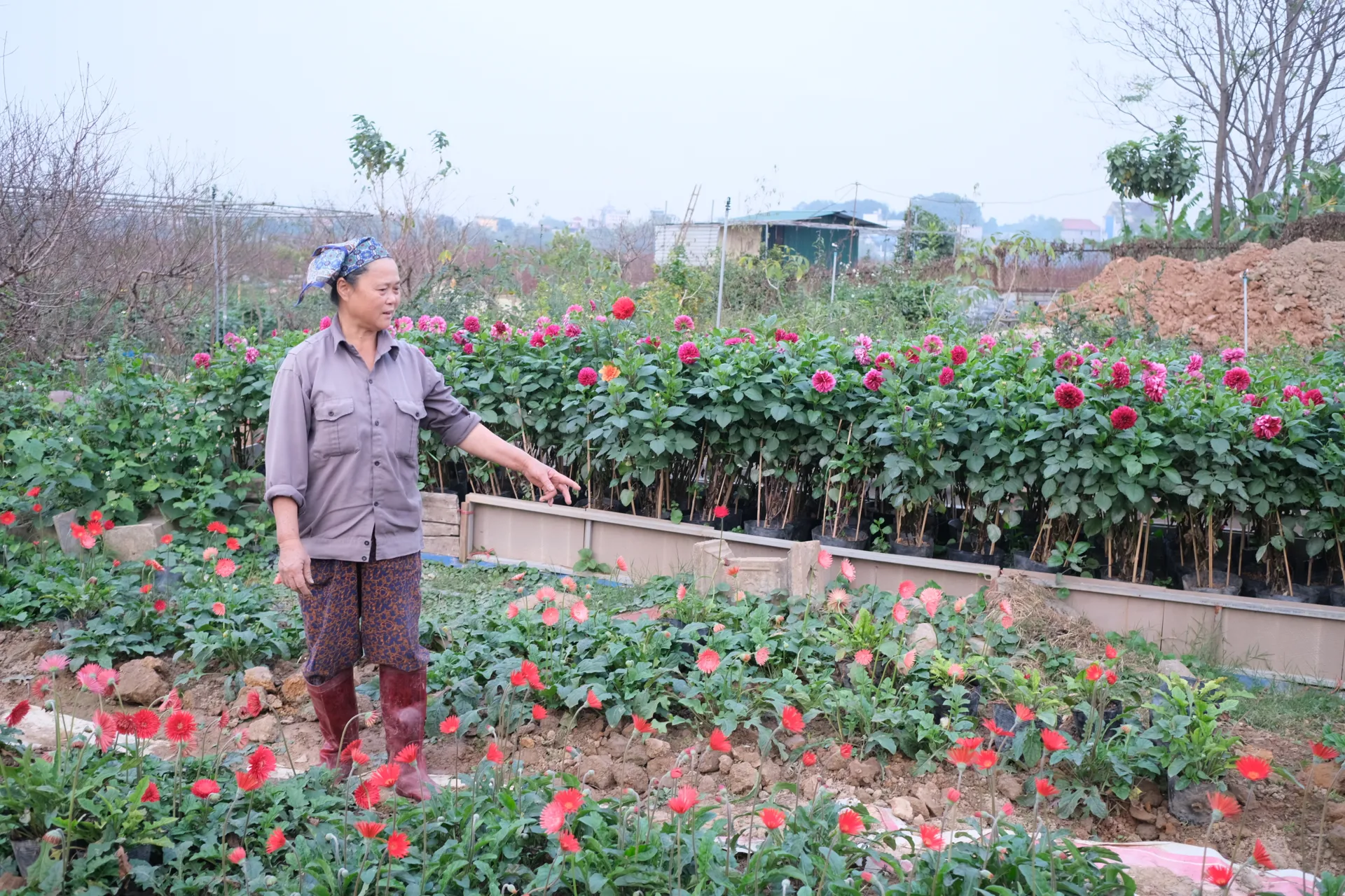 Giữa những luống hoa nở rộ, gương mặt người trồng hoa ánh lên niềm vui khi bước vào mùa thu hoạch lớn nhất trong năm - mùa hoa Tết.