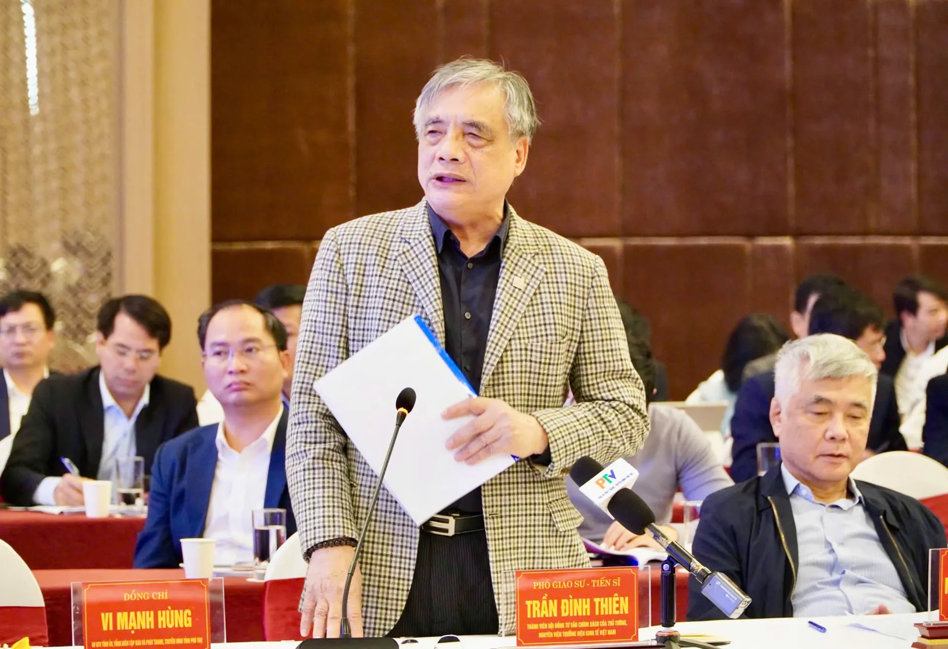 PGS. TS. Trần Đình Thiên đóng góp ý kiến điều chỉnh Quy hoạch tỉnh Phú Thọ thời kỳ 2021-2030, tầm nhìn đến năm 2050. Ảnh: Lương Giang