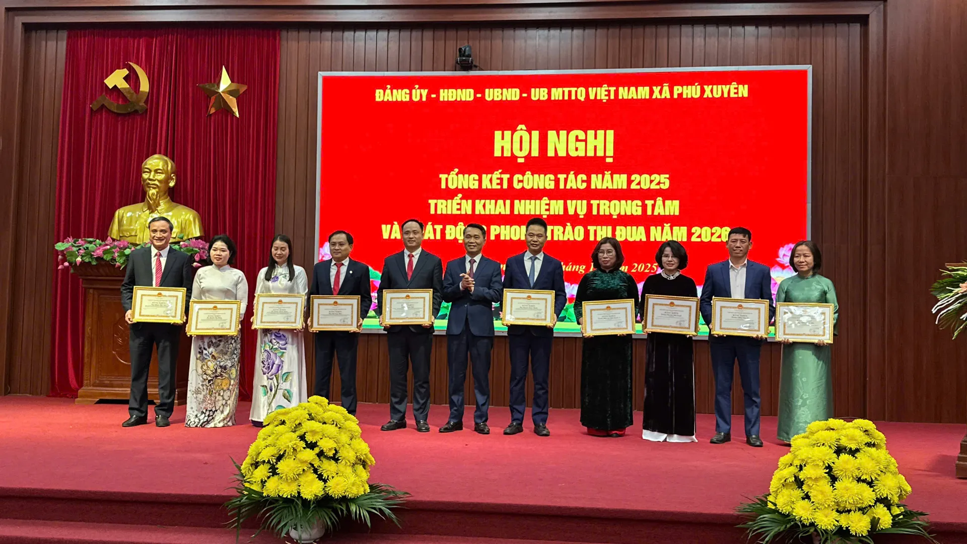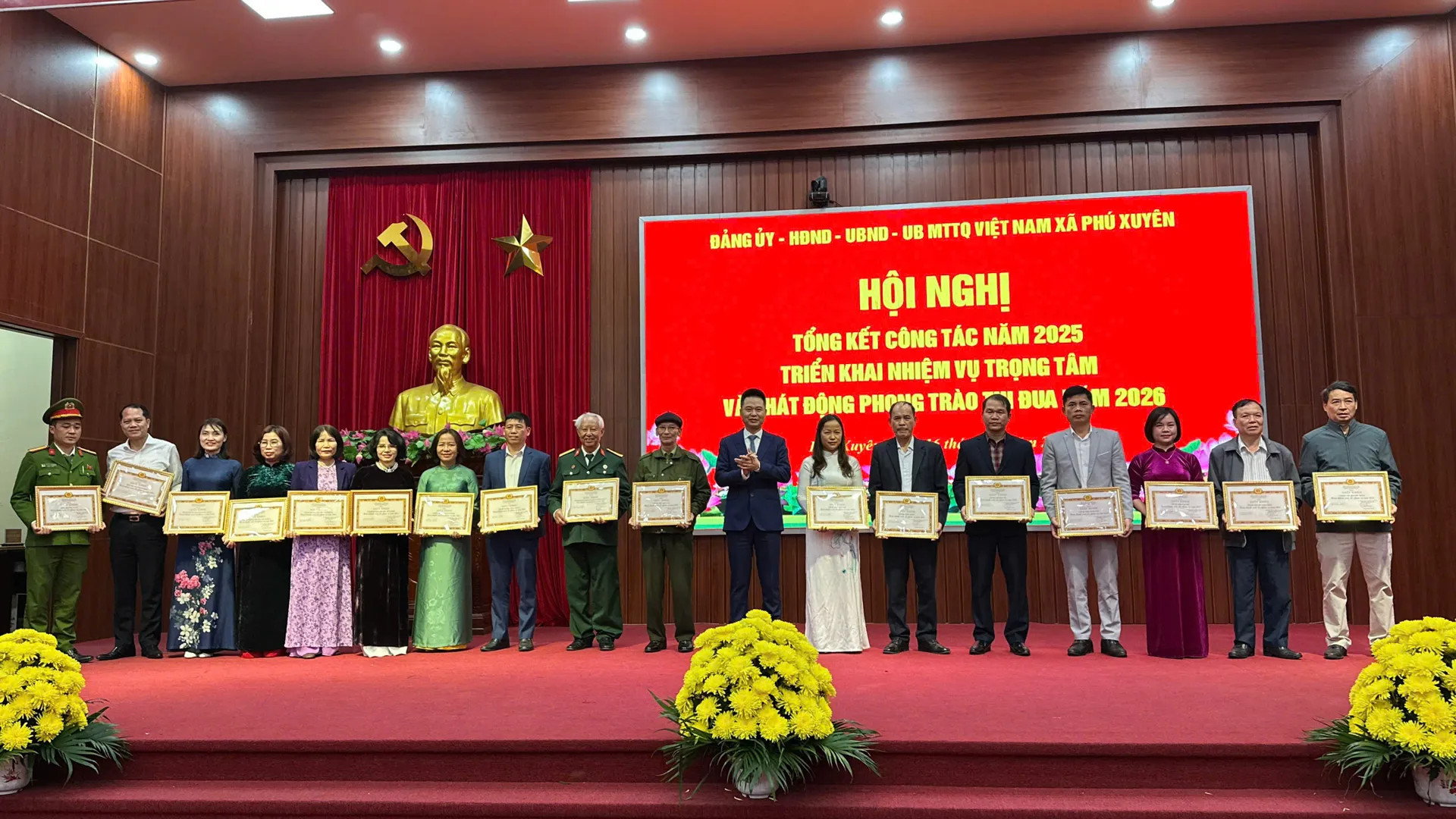 Nhân dịp này, 16 tập thể, cá nhân của xã được Thành ủy, UBND Thành phố Hà Nội tặng Bằng khen; xã Phú Xuyên cũng khen thưởng cho 91 tập thể, cá nhân đạt thành tích xuất sắc trong phong trào công tác năm 2025.