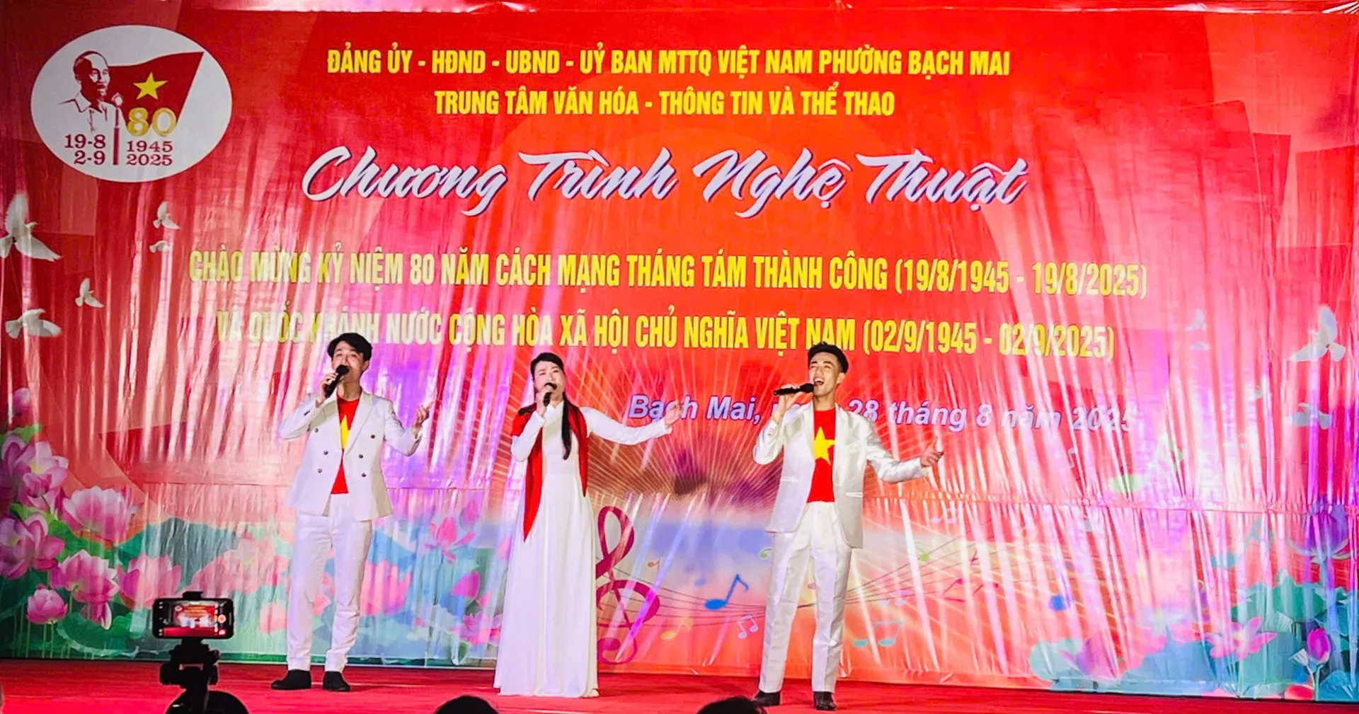 Kinntedothi- Hòa chung không khí hào hùng của những ngày mùa thu lịch sử, cả nước hân hoan chào mừng kỷ niệm 80 năm Cách mạng Tháng Tám thành công (19/8/1945-19/8/2025) và Quốc khánh nước CHXHCN Việt Nam (2/9/1945-2/9/2025), thực hiện chỉ đạo của Đảng ủy - HĐND - UBND - UB MTTQ Việt Nam phường, tối nay, 28/8, Trung tâm Văn hóa - Thông tin và Thể thao phường Bạch Mai tưng bừng tổ chức Chương trình nghệ thuật chào mừng kỷ niệm 80 năm Cách mạng Tháng Tám và Quốc khánh nước CHXHCN Việt Nam.