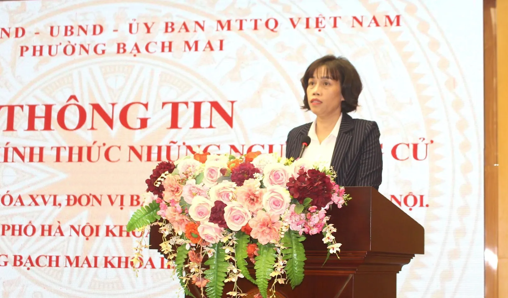 Phó Bí thư Đảng ủy, Chủ tịch UBND phường Bạch Mai Nguyễn Thị Thu Hiền thông tin các danh sách chính thức những người ứng cử