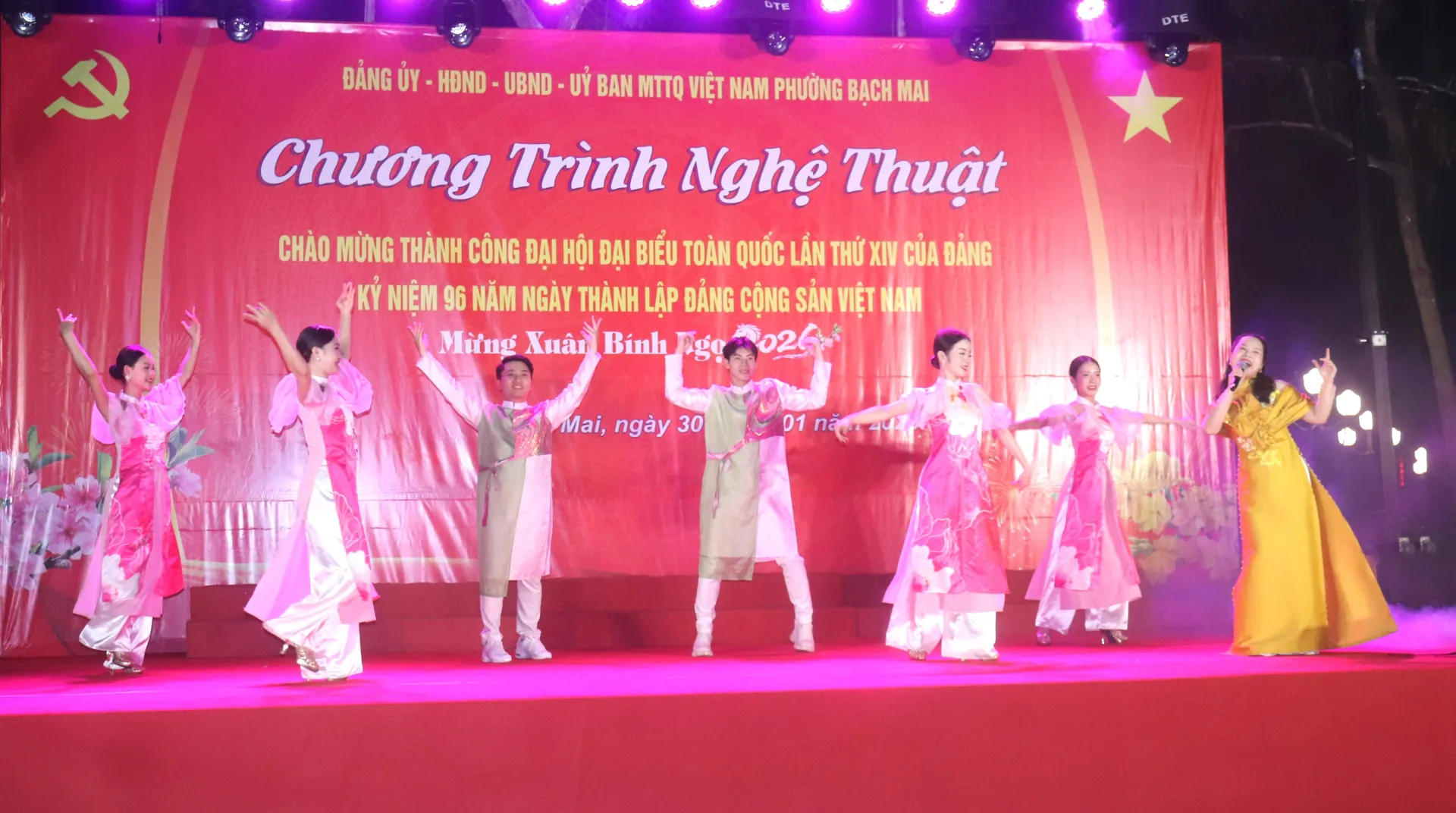 Quang cảnh Chương trình nghệ thuật chào mừng thành công Đại hội đại biểu toàn quốc lần thứ XIV của Đảng, kỷ niệm 96 năm Ngày thành lập Đảng Cộng sản Việt Nam và mừng xuân Bính Ngọ 2026 do phường Bạch Mai tổ chức