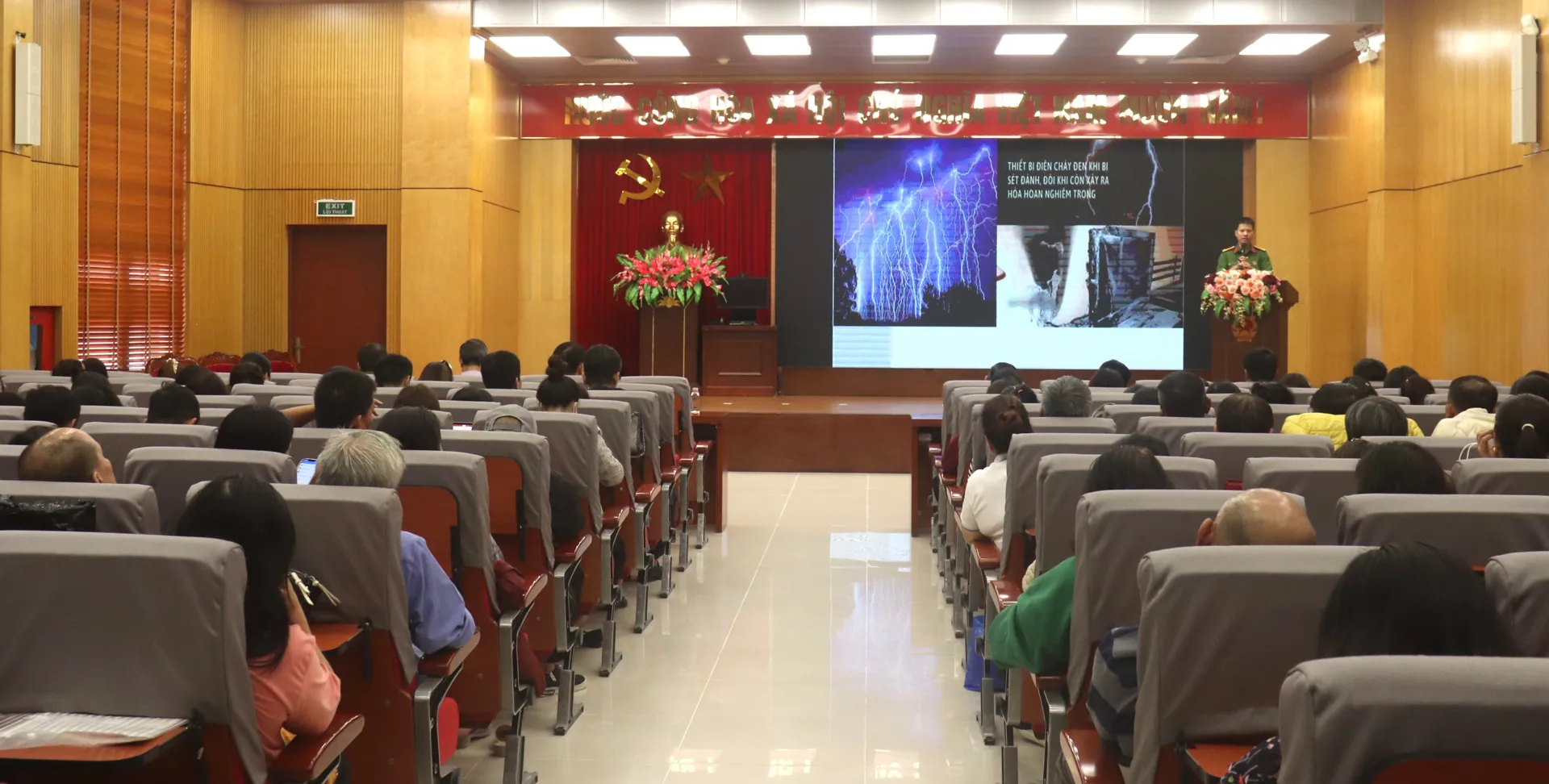 Các đại biểu và cán bộ phòng cháy chữa cháy ở cơ sở tham dự tập huấn công tác phòng cháy, chữa cháy và cứu nạn, cứu hộ trên địa bàn phường Bạch Mai năm 2025