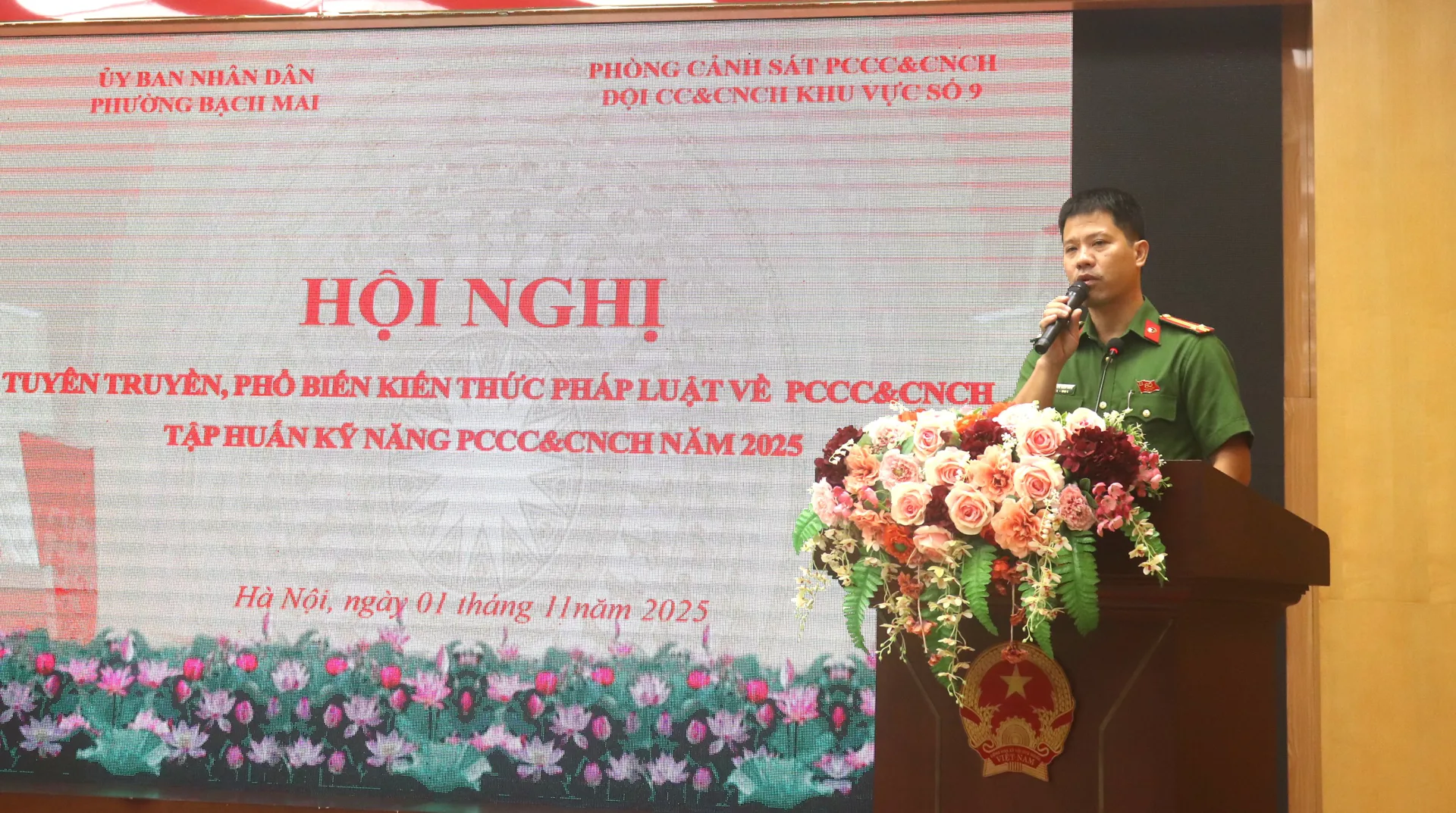 Sáng nay, 1/11, tại trụ sở Đảng ủy - HĐND - UBND phường, UBND phường Bạch Mai tổ chức tổ chức tập huấn công tác PCCC&CNCH trên địa bàn phường năm 2025.