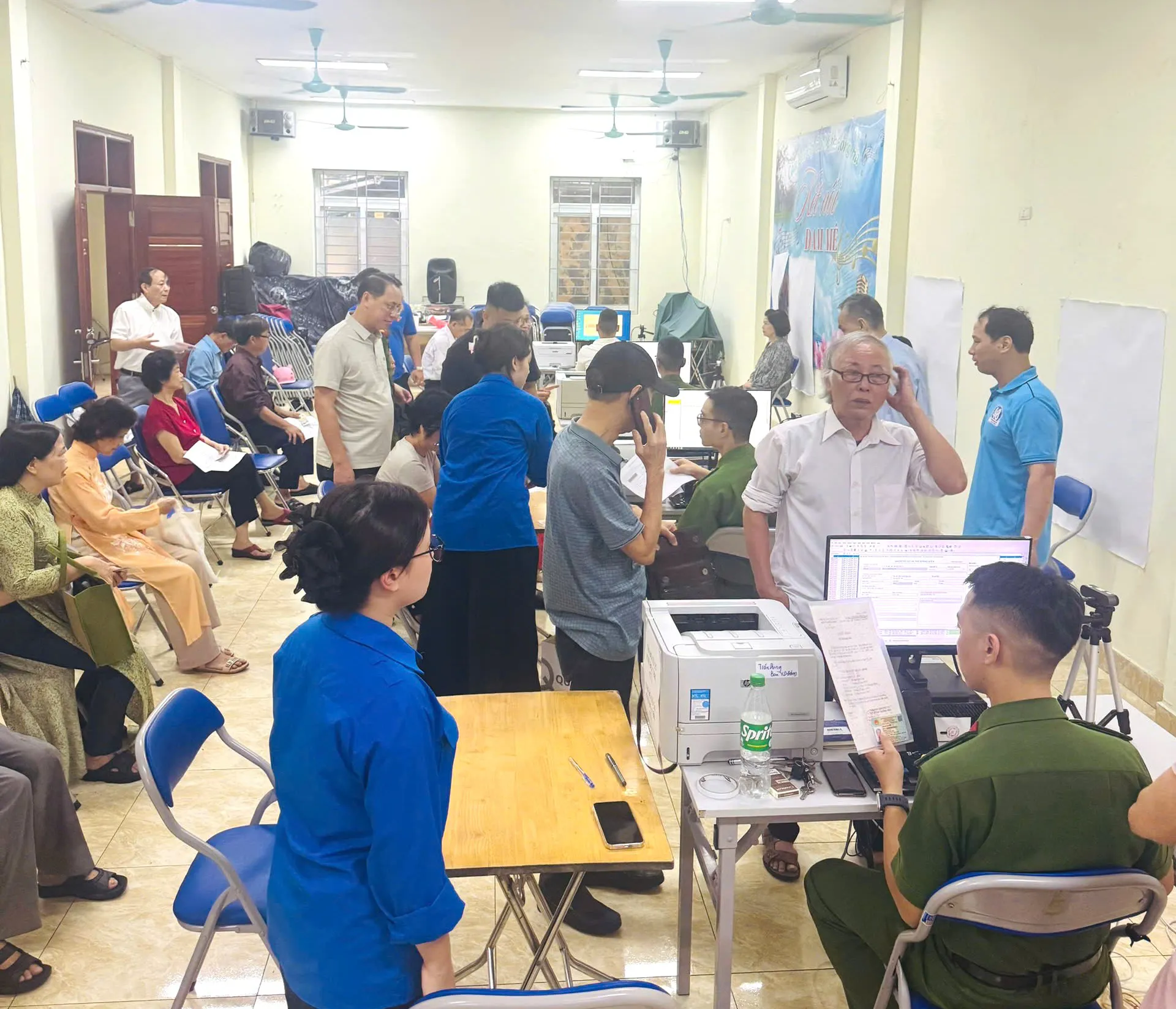 Phường huy động mỗi ngày có 5 đoàn viên thanh niên và 8 chiến sĩ Công an, cùng các cán bộ chuyên viên Ban Xây dựng Đảng phân công 3 ca làm việc liên tục hàng ngày phục vụ các đảng viên đến chụp ảnh, chuẩn hóa dữ liệu.