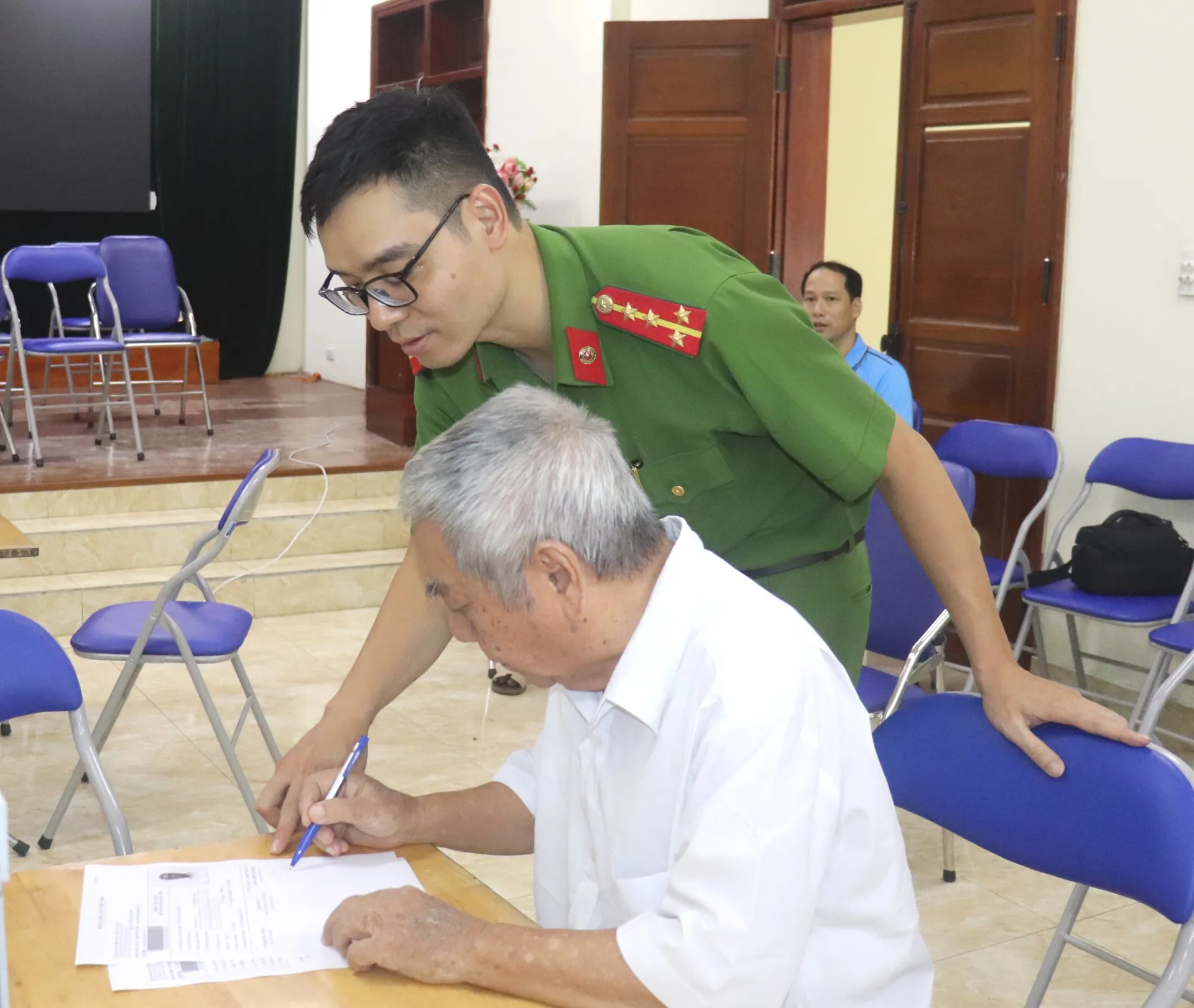 Cuối chiều Chủ nhật (10/8), dù đang nghỉ giữa 2 ca làm việc vẫn có một số đảng viên cao tuổi đến thực hiện chuẩn hóa dữ liệu, chụp ảnh đổi Thẻ đảng viên, được cán bộ, chiến sĩ, đoàn viên thanh niên phường Bạch Mai phục vụ tận tình