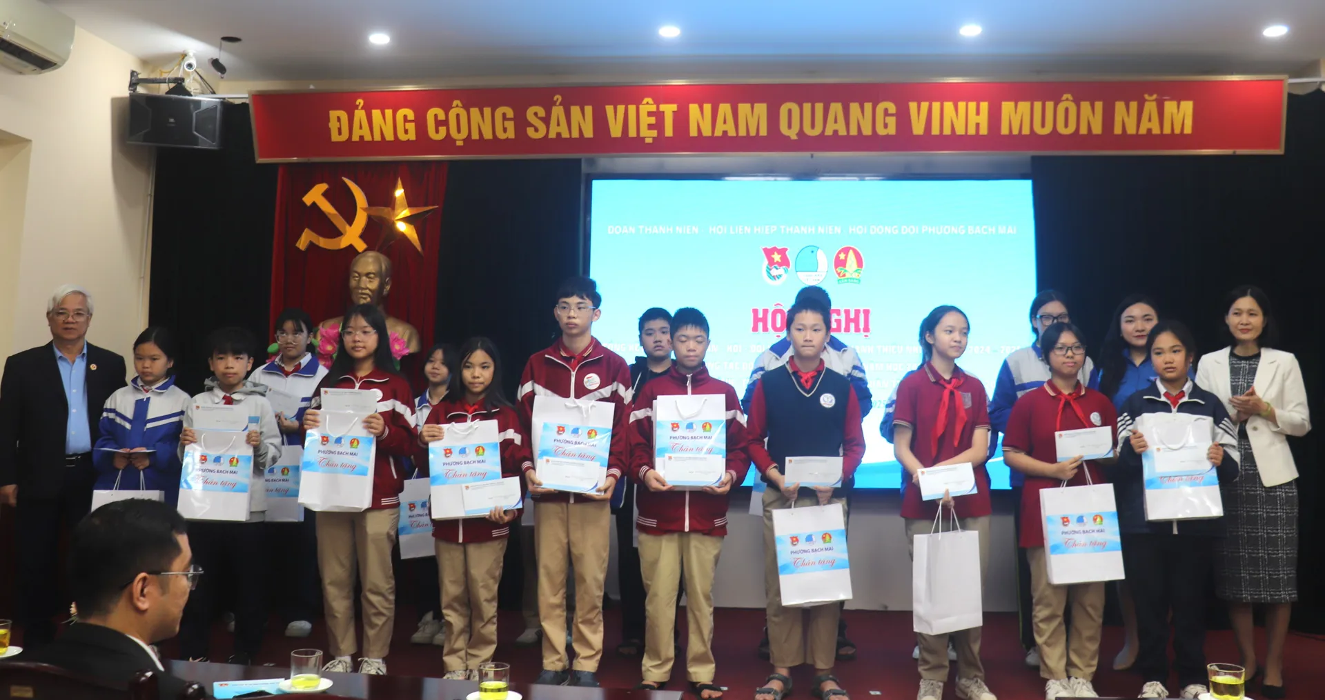 Kinhtedothi-Đoàn Thanh niên - Hội Liên hiệp thanh niên - Hội đồng đội phường Bạch Mai đã tổ chức khen thưởng những tập thể, cá nhân có thành tích xuất sắc trong công tác Đoàn - Hội - Đội, phong trào thanh thiếu nhi tại phường và trao tặng 50 suất quà cho các em học sinh có hoàn cảnh khó khăn đang học tập tại 14 liên đội trực thuộc
