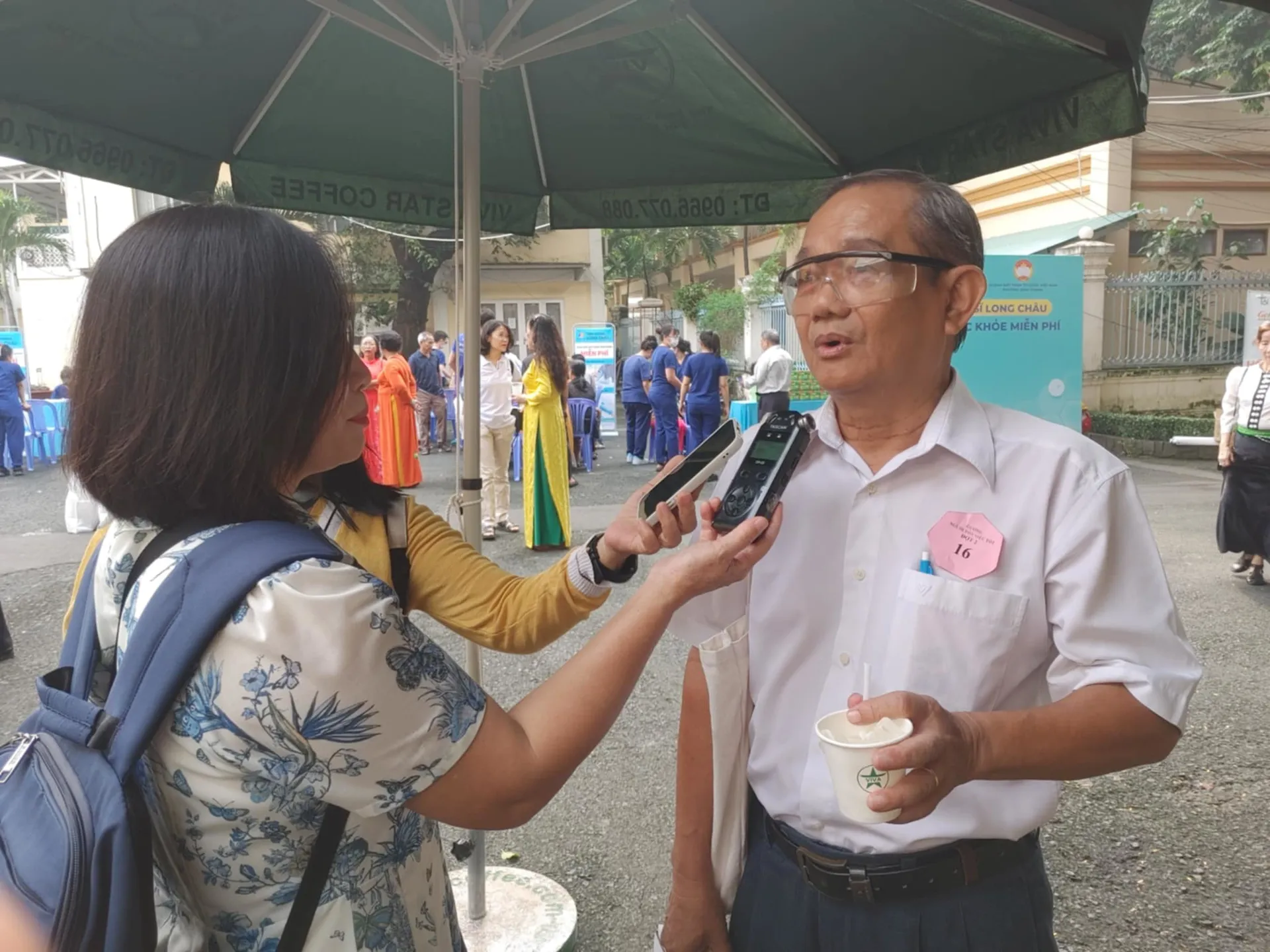 Nhân viên nhà thuốc Long Châu tư vấn và khám, phát thuốc miễn phí cho đại biểu dự lễ kỷ niệm.