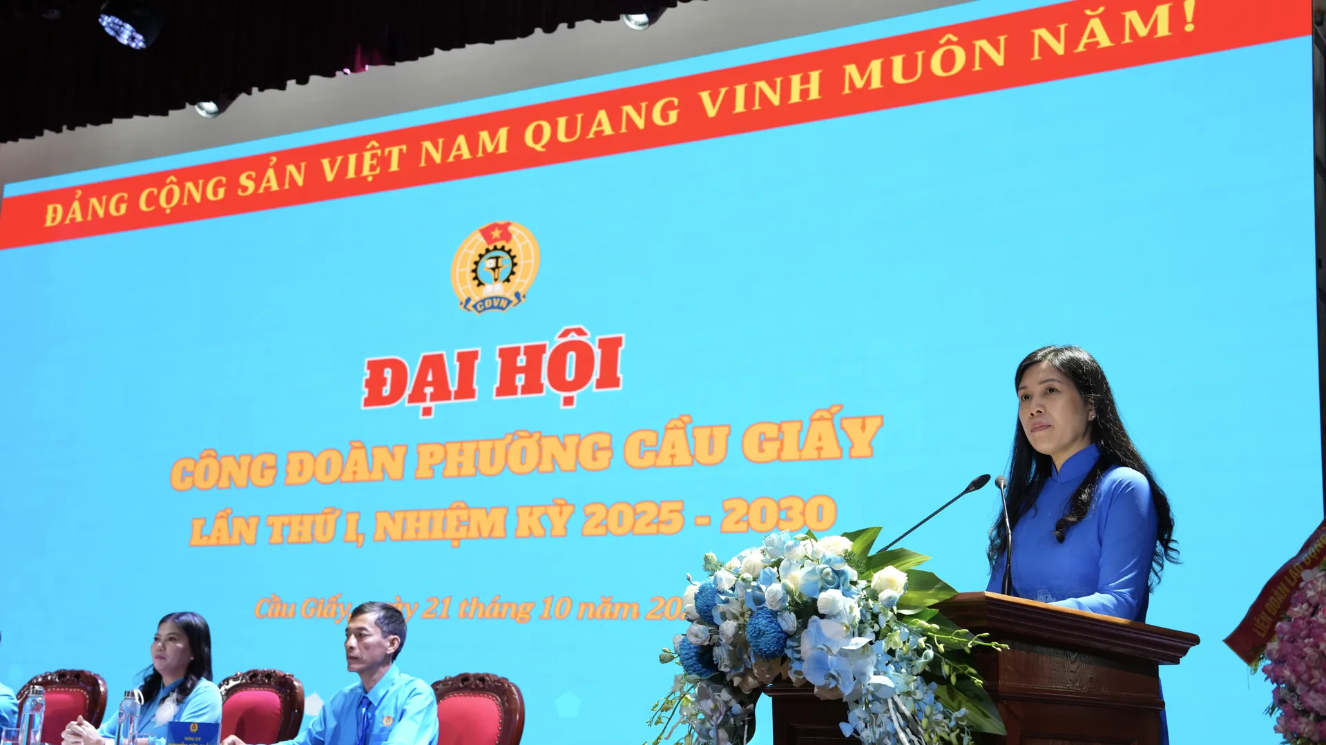 Phát biểu chỉ đạo đại hội, đồng chí Trần Thị Phương Hoa - Thành ủy viên, Bí thư Đảng ủy, Chủ tịch HĐND phường Cầu Giấy khẳng định: “Đại hội Công đoàn phường lần thứ nhất là một dấu mốc quan trọng, thể hiện sự trưởng thành của phong trào công nhân, viên chức, lao động phường Cầu Giấy. Ban Chấp hành khóa mới cần phát huy tinh thần đoàn kết, sáng tạo, tiên phong trong chuyển đổi số, gắn hoạt động công đoàn với phát triển kinh tế - xã hội của phường, xây dựng đội ngũ cán bộ công đoàn vững vàng, tâm huyết, đáp ứng yêu cầu của thời kỳ mới”.