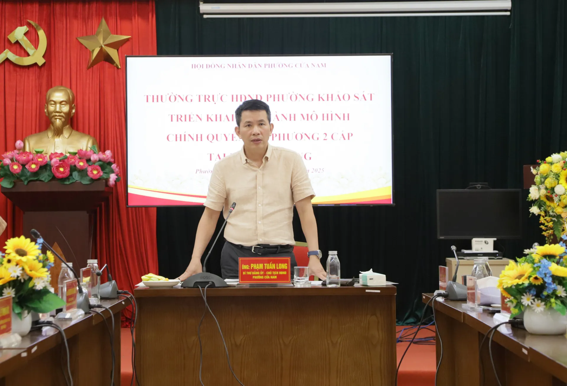 Phát biểu kết luận, Bí thư Đảng uỷ - Chủ tịch HĐND phường Cửa Nam Phạm Tuấn Long ghi nhận những nỗ lực của các phòng, ban, đơn vị thuộc UBND phường. Đồng thời chia sẻ về những khó khăn, vướng mắc trong thời gian đầu thực hiện mô hình chính quyền địa phương 2 cấp.