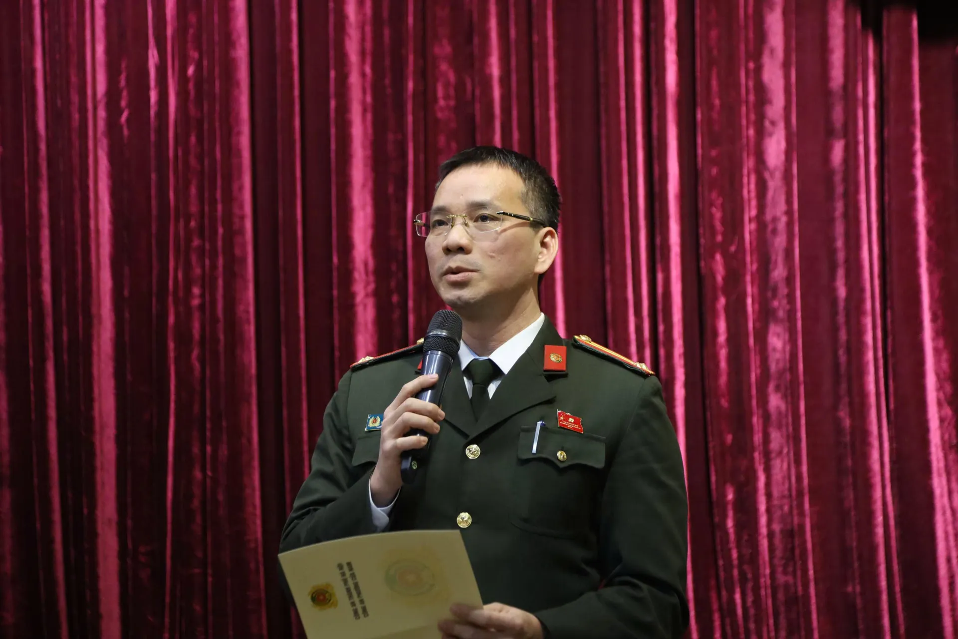 Trung tá Vũ Mạnh Hải - Phó Trưởng Công an phường Cửa Nam phát biểu tại chương trình.