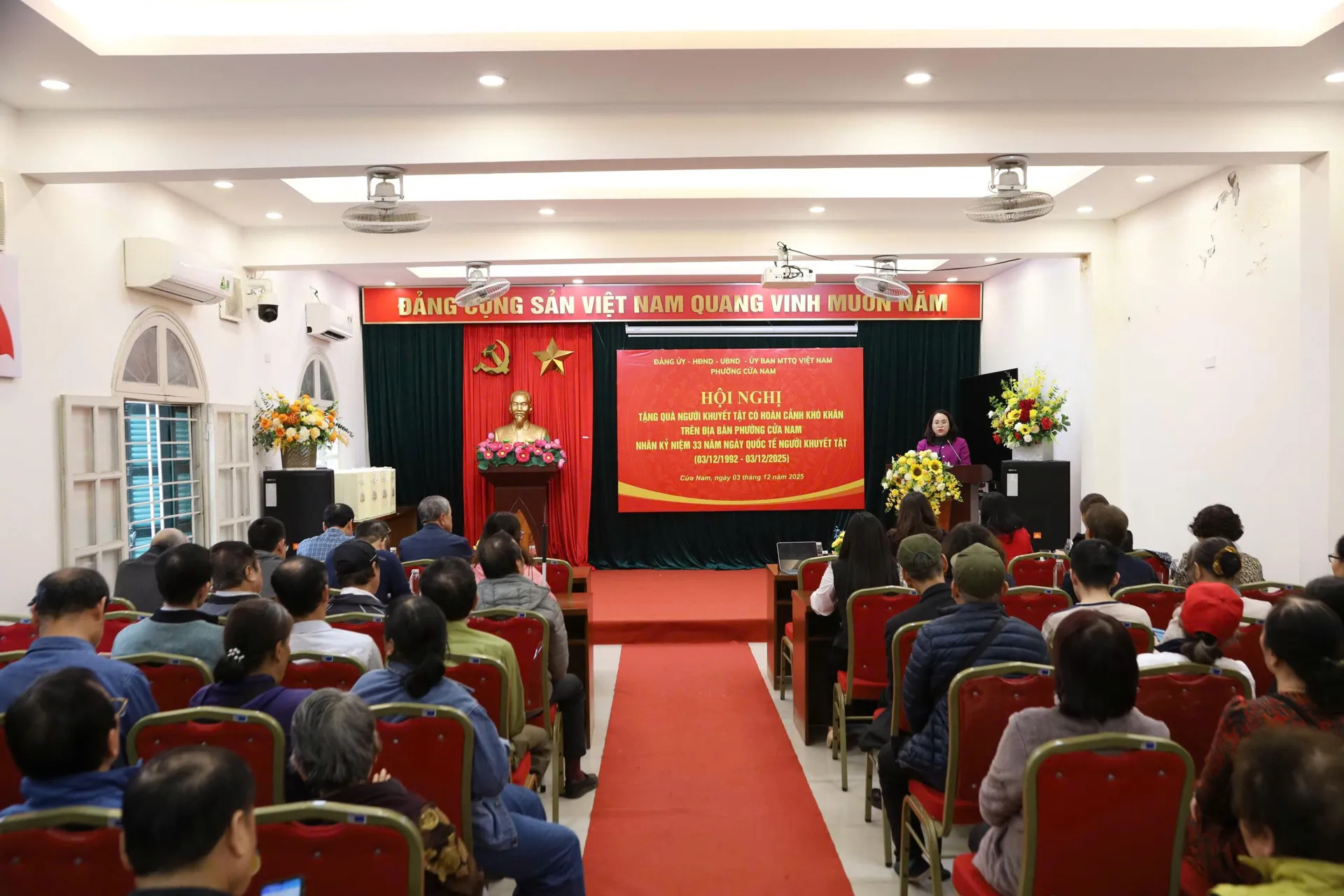 Hội nghị tặng quà nhân Ngày Quốc tế Người khuyết tật 3/12 là hoạt động thường niên của phường Cửa Nam, thể hiện tinh thần đoàn kết, sẻ chia của cộng đồng và sự quan tâm của chính quyền địa phương đối với những người có hoàn cảnh đặc biệt.