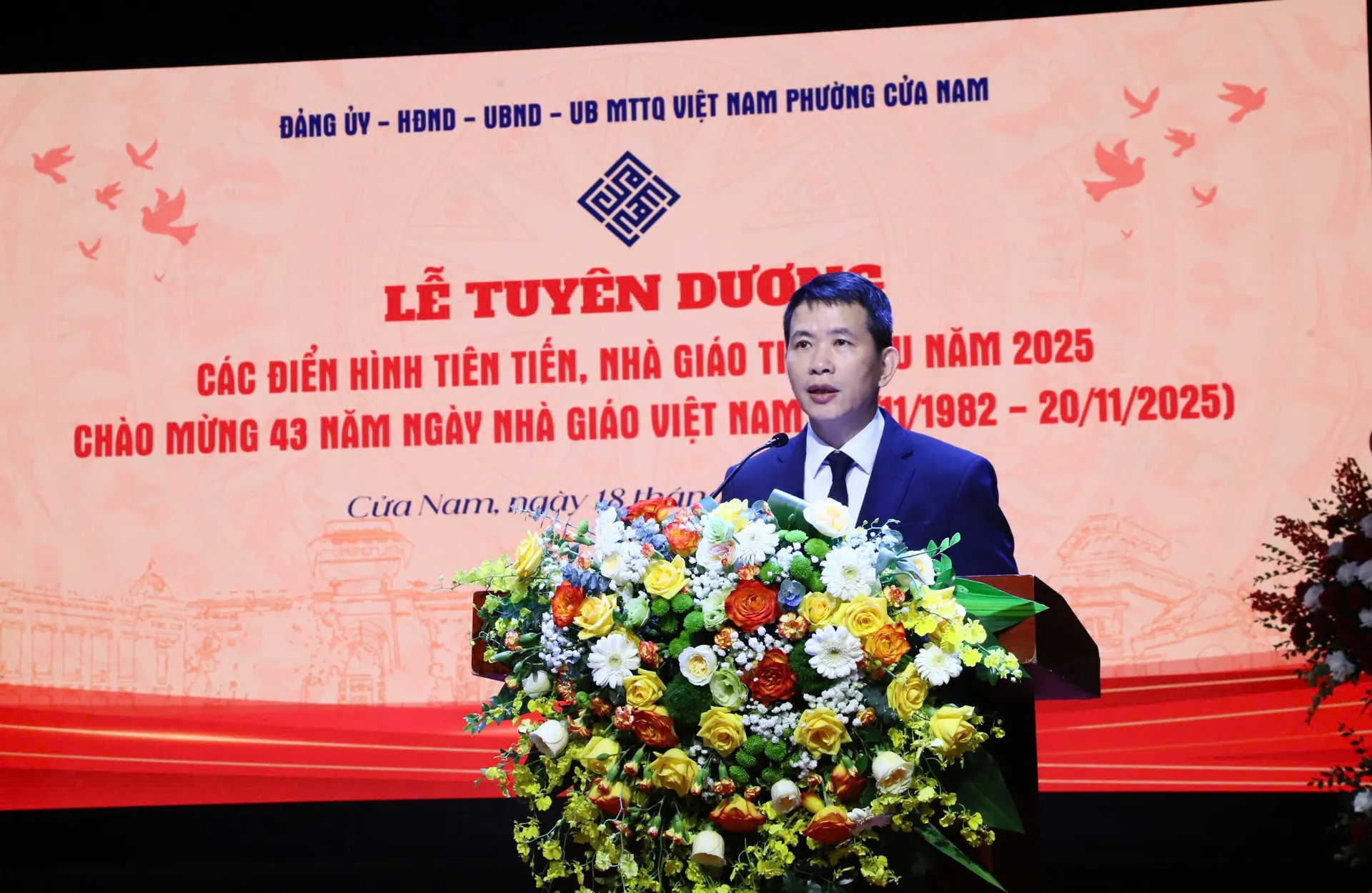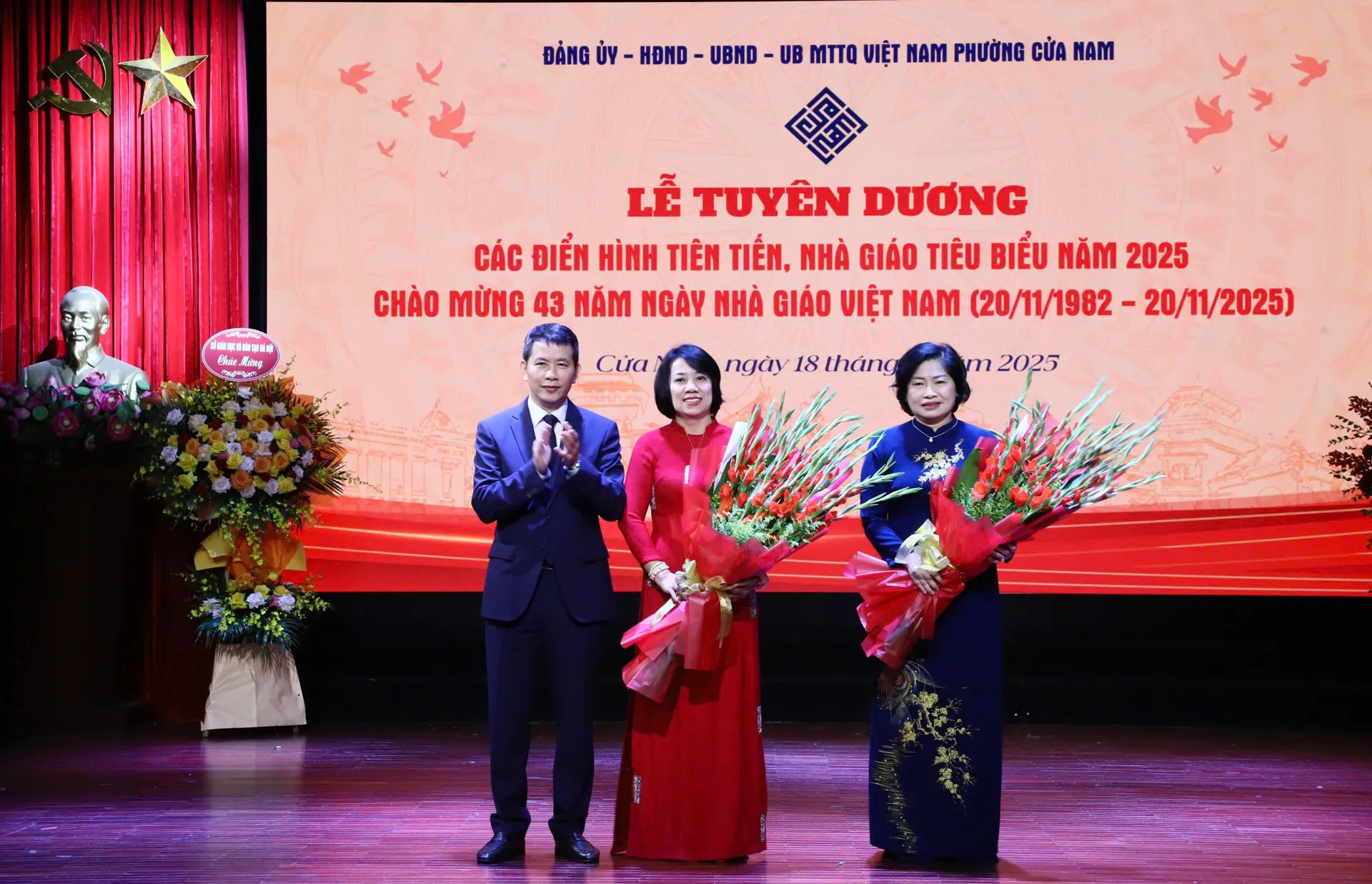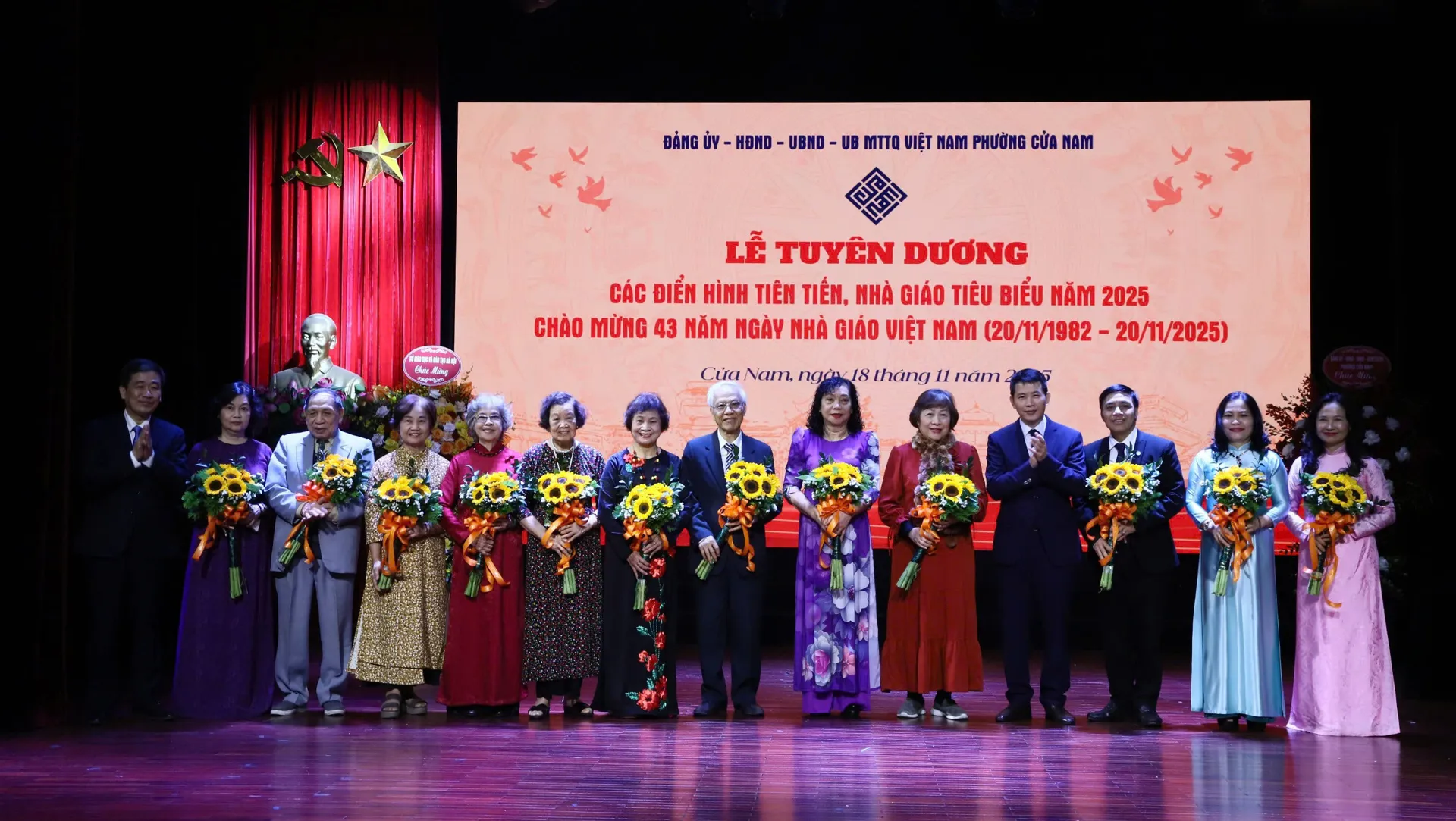 Trong không khí chào mừng 43 năm Ngày Nhà giáo Việt Nam (20/11/1982 - 20/11/2025), sáng 18/11, phường Cửa Nam tổ chức Lễ tuyên dương các điển hình tiên tiến, nhà giáo tiêu biểu năm 2025.